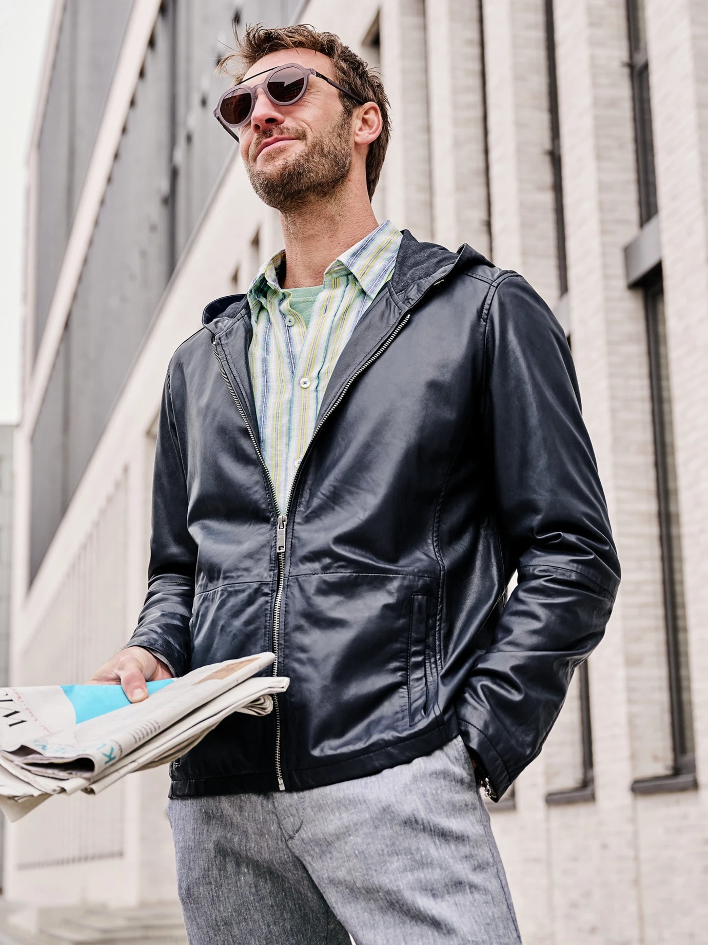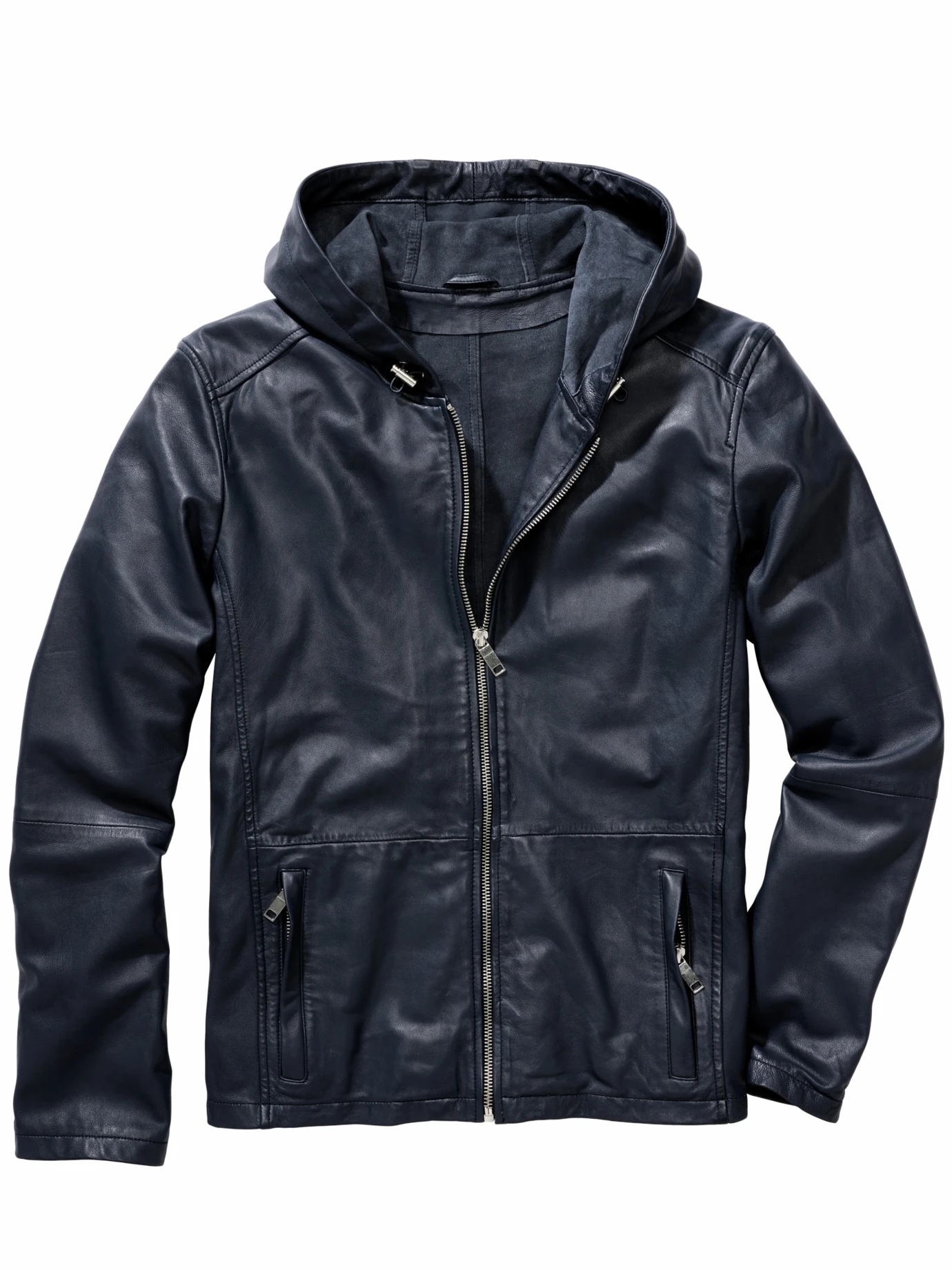 Für den Sommer reichen 900 Gramm teures Leder. Damit eine Lederjacke mit Kapuze derart leicht ist, haben wir auf überflüssiges Futter verzichtet. Schön offen gearbeitet, damit die Jacke dennoch viel abkann, benötigt es Premiumleder. Genauer hochwertiges Lammleder, das dünner als vergleichbare Lederarten ist. Damit es richtig butterweich ist, zusätzlich gewaschen (als läge die Jacke schon länger bei Ihnen). Mit coolen Details: die Kapuze ist per Gummizug einstellbar (liegt damit sicher auf dem Kopf), beinahe unsichtbare Teilungsnähte.