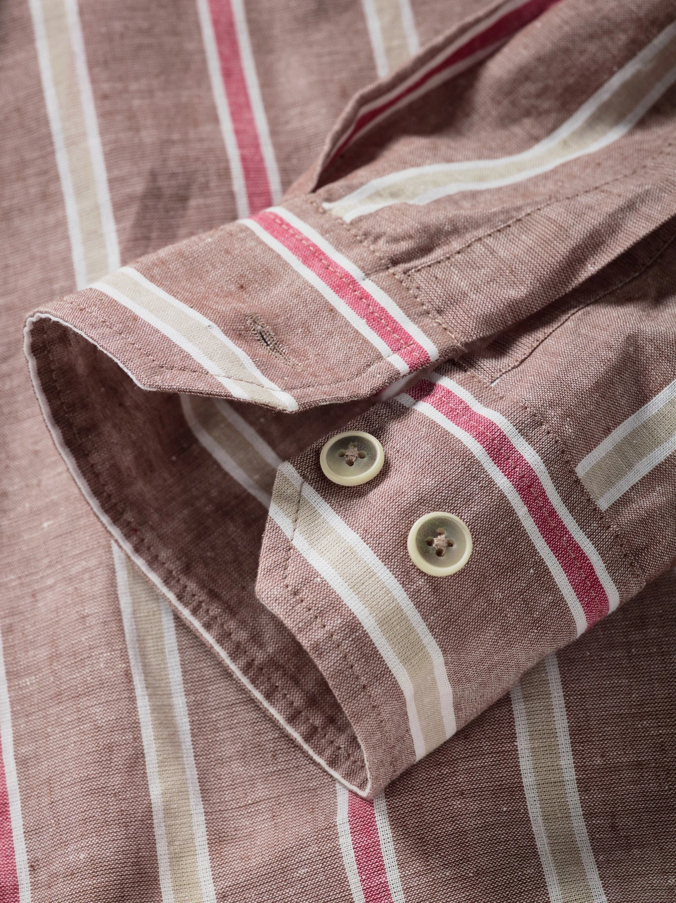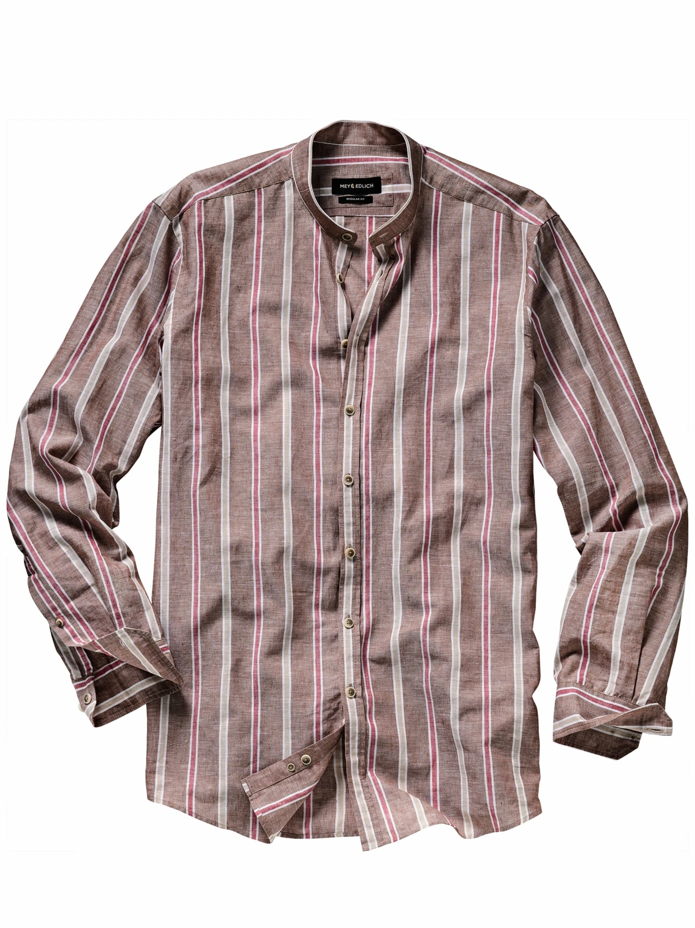 Damit wirken Sie verdammt ausgeglichen. Ein Leinenhemd hat gegenüber anderen Hemden einen entscheidenden Vorteil: Sie geraten nicht ins Schwitzen. Die körnige Struktur nimmt Feuchtigkeit einfach auf und gibt sie unbemerkt ab. Ordentlich wirkt das Hemd dann durch die Baumwolle. Der eingewebte Wäschestreifen treibt den Sympathiefaktor nach oben und wirkt leicht heritage. Entweder dann zugeknöpft zur Jeans oder leicht geöffnet überm Shirt tragen.