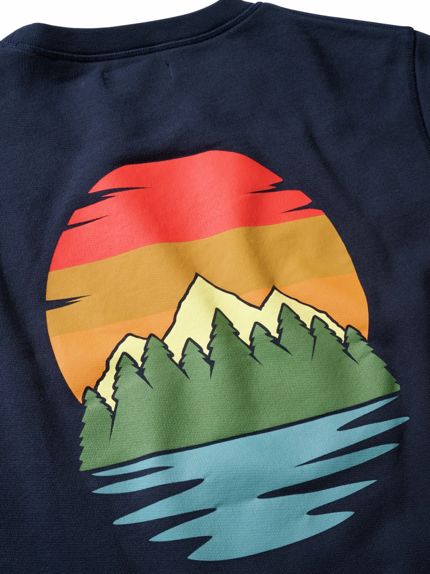 Aussicht auf Entspannung. Auf der Brust ruft der Berg, der Rücken des Sweatshirts erinnert daran, dass ein Perspektivwechsel ein neues Panorama eröffnen kann. Die Strahlefarben und die roten Nähte geben Kraft für die nächste Etappe. Der handwerklich gefertigte Baumwollstoff aus Portugal ist innen leicht angeraut und speichert die Körperwärme während Ihrer mentalen Auszeit im Freien. Einfach in Jeans und Sneakern das große Ganze auf sich wirken lassen.