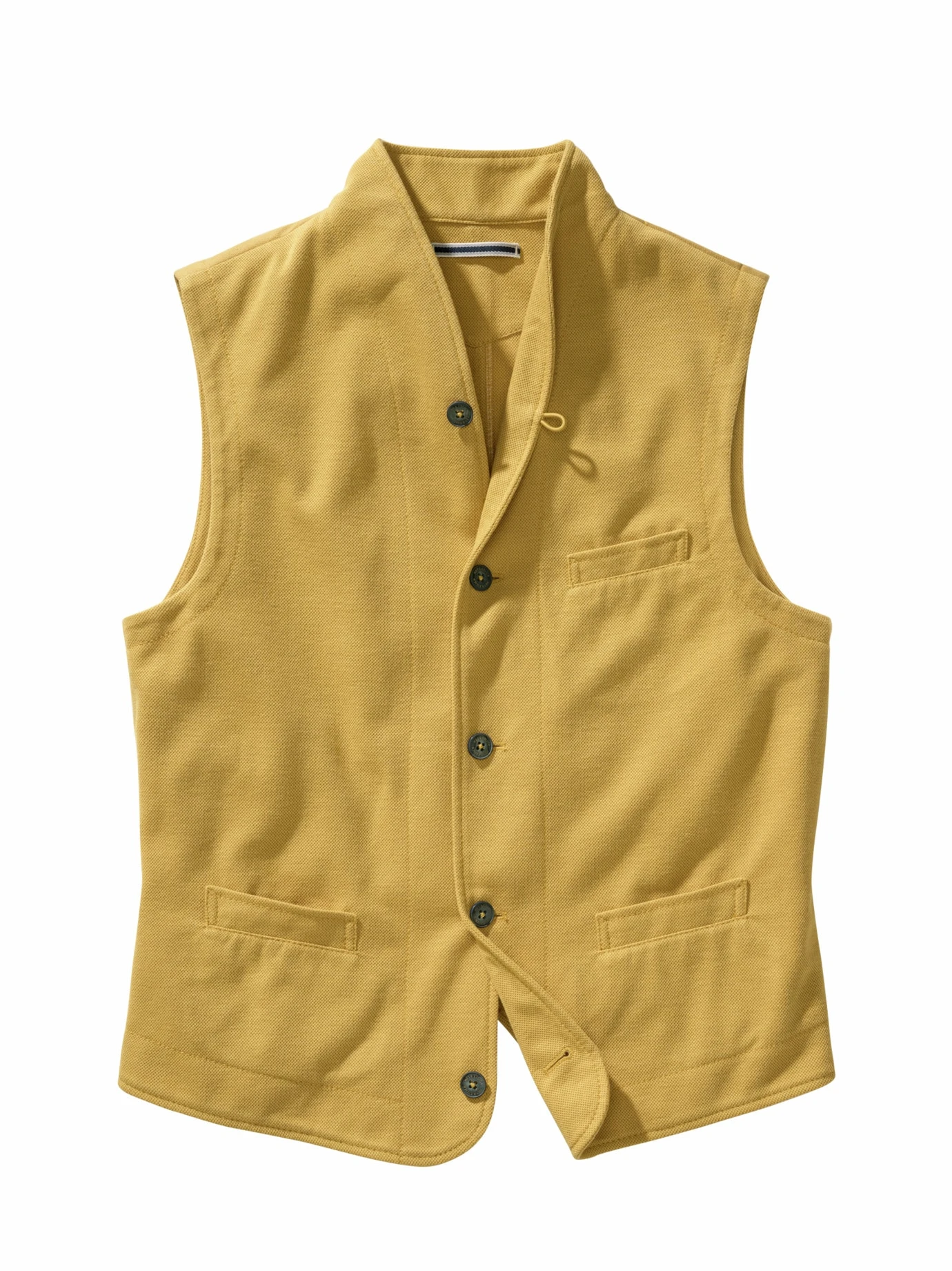 Eine, die man nicht missen möchte. Die Weste ist aus weichem, fein strukturiertem Piqué-Jersey mit viel Baumwolle und einem guten Anteil innovativer Fasern, die sie robust machen. Vorn ist die Weste doppellagig gefertigt, das gibt Stand, das Rückenteil ist ungefüttert und linksseitig verarbeitet, was den dezent zweifarbigen Effekt erzeugt. Der hohe Tragekomfort ist schnell so selbstverständlich, dass man die aufwendige Verarbeitung dahinter fast vergisst – so soll es sein. Drunter passen Hemd oder Longsleeve, als Hose geht alles, was nicht zu fein ist.