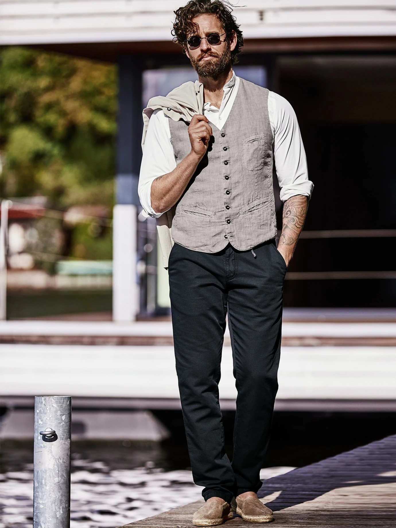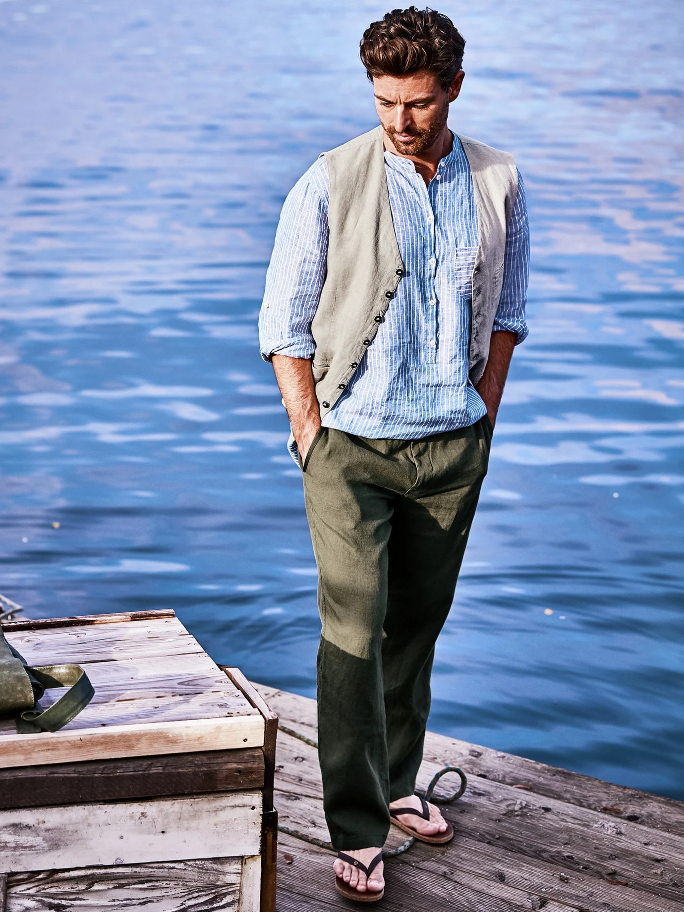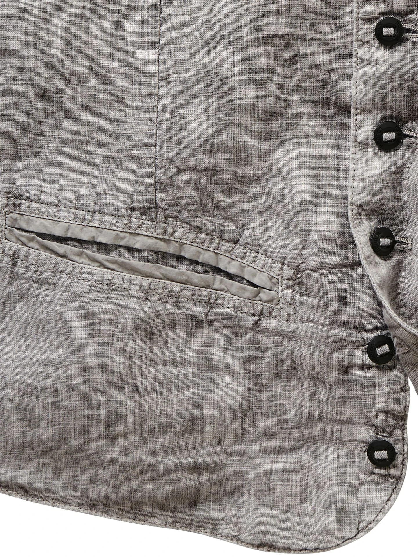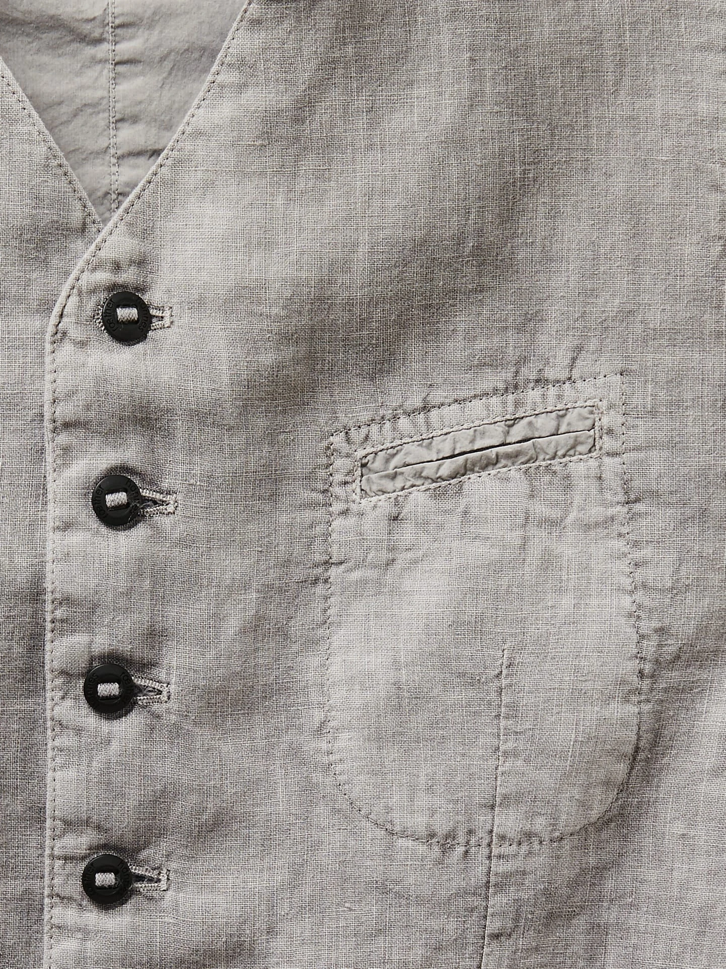 Form follows function. Und die Form dieser Weste der Leinenfaser. Das Leinen stammt aus Flandern, Belgien, einer Region für weltweit beste Leinen-Qualitäten, wie sie selten noch zu finden sind. Die Fasern werden nicht hart, sondern sanft gespannt, wodurch sie sich ihre leicht kräuselnde Form bewahren und den Charakter dieser Weste prägen. Ansonsten ist die Verarbeitung so schlicht und hochwertig, wie Sie es von hannes roether kennen, mit den kleinen Details, die es für sein unverwechselbares Design braucht: acht Knöpfe, eine niedrig sitzende Brusttasche und ein minimal kontrastierender Rücken aus reiner Baumwolle. Dazu zwei Paspeltaschen.