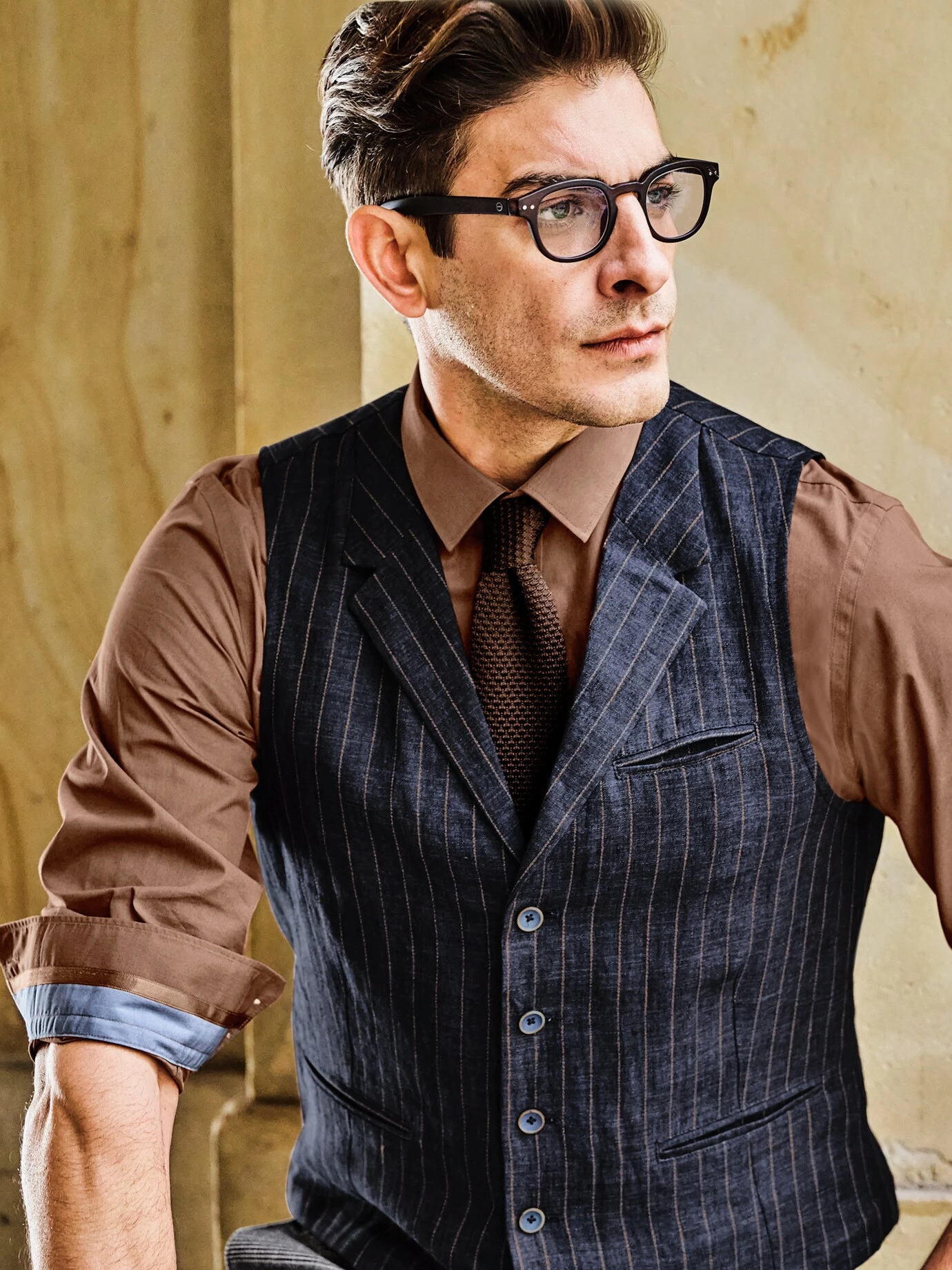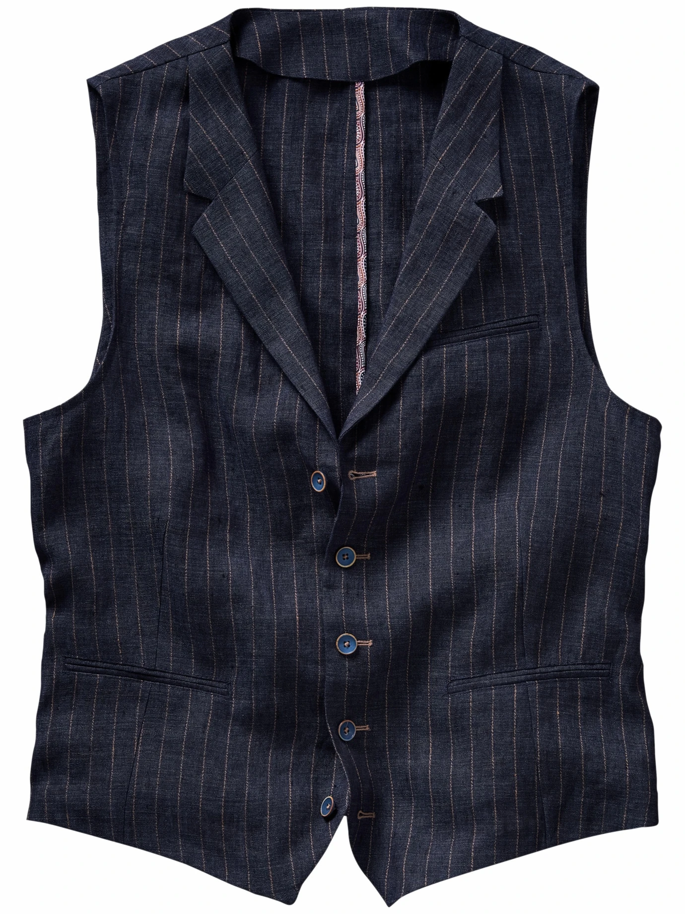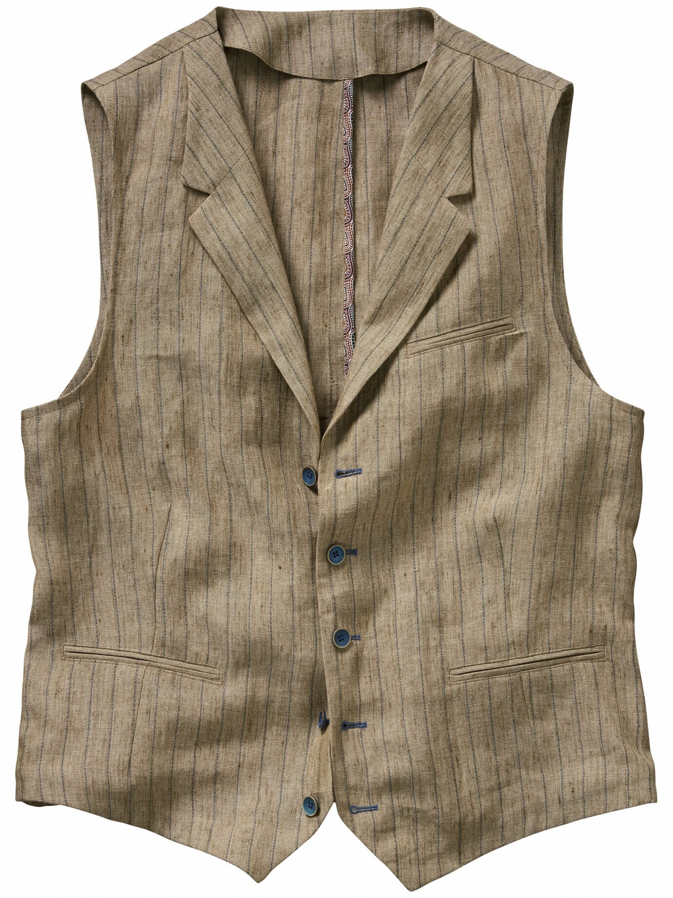 Eine, die was hermacht und was aushält. Aus der Zeit, als Wissenschaftler auch im tiefsten Dschungel, an der Ausgrabungsstätte oder im Packeis an ihrem Stil festhielten und Weste trugen. Nicht aus feinem Zwirn, robustes handfestes Leinen musste es sein. Dieses ist sanft vorgewaschen (Delavé) und wirkt von Anfang an authentisch. Stark mit Jeans, elegant zur Bundfaltenhose, rural mit Strohhut, Cargo- oder Cordhosen, Schnürboots und Lederrucksack.