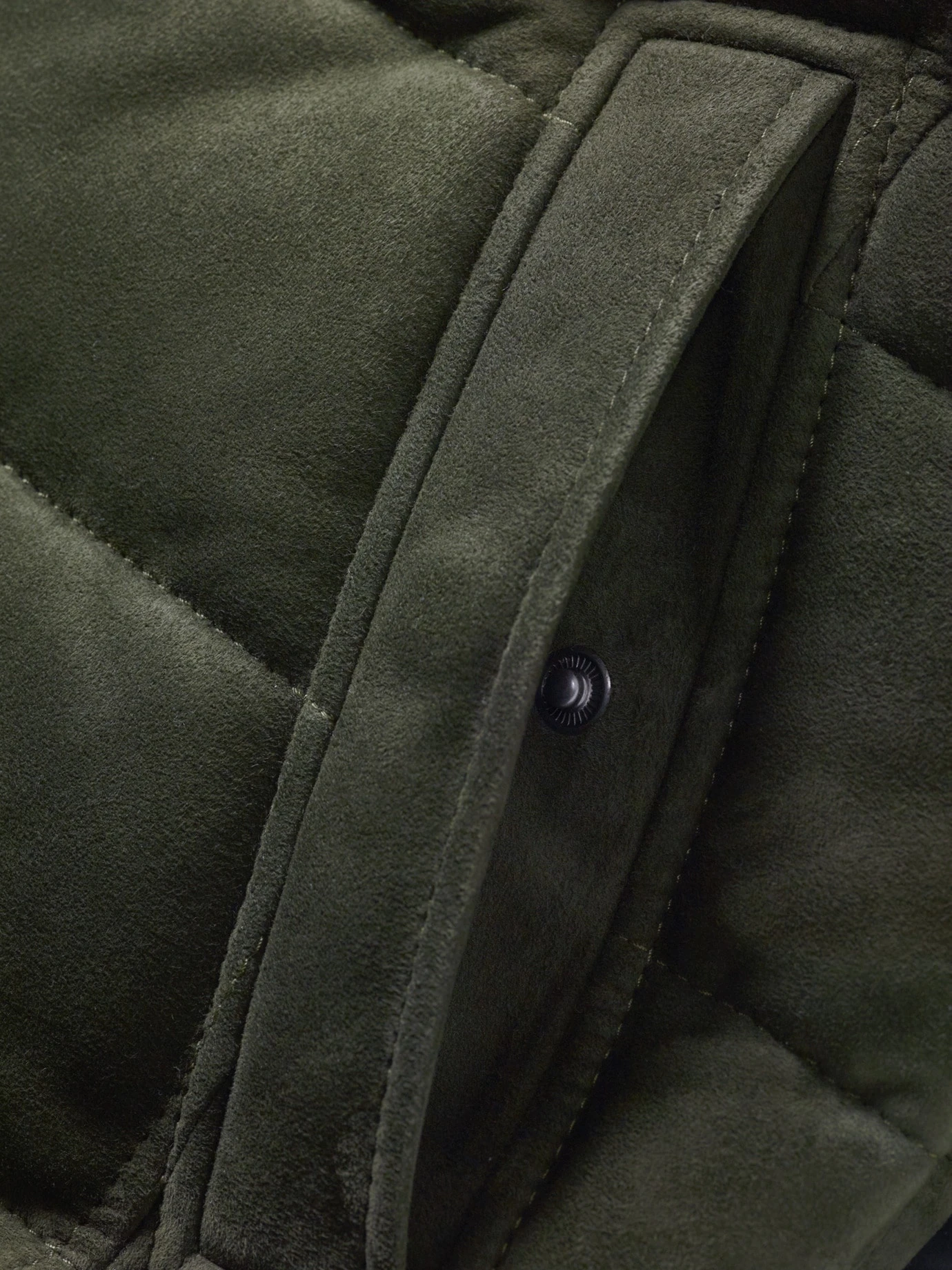 Eine ganz erhabene Weste. Sie ist eine echte Westen-Rarität – eine Weste aus samtweichem Ziegenveloursleder. Ziegenvelours ist robust, überraschend leicht und wahnsinnig geschmeidig. Dazu kommt der durchdachte Stil mit der unverkennbaren Steppung, die ihre wärmenden Umgangsformen unterstreicht, ohne Sie gleich ins Schwitzen zu bringen. Moderne Details wie der Stehkragen mit Kragenriegel ergänzen den klassischen Schnitt zeitgemäß. Zusammen mit dem Farbton wirkt sie edel. Getragen wird sie zum schmalen Hemd samt enger Jeans. Oder – wenn frischer Wind weht – zum Pullover.