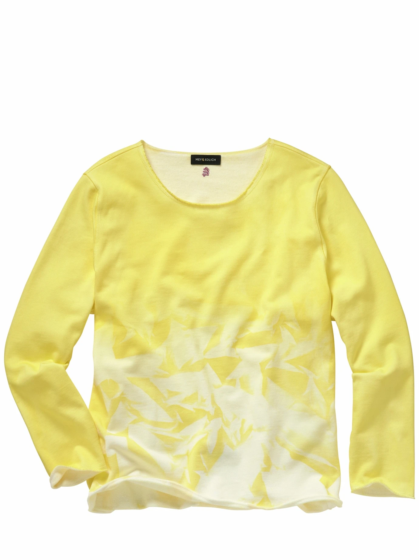 Erfrischend anders. An Zitronensorbet erinnert die Farbigkeit des Sweatshirts. Tatsächlich wird dafür der Rumpf fest zusammengebunden und dann das Teil im Ganzen in Portugal in ein Farbbad getaucht. So entsteht der Batik-Look, der immer unterschiedlich ausfällt. Ansonsten solider Baumwolljersey (wiegt 380 g/m) und ergibt ein Shirt, das fest genug ist, um es sogar überm Leinenhemd zu tragen. Macht aber auch solo eine super Figur.