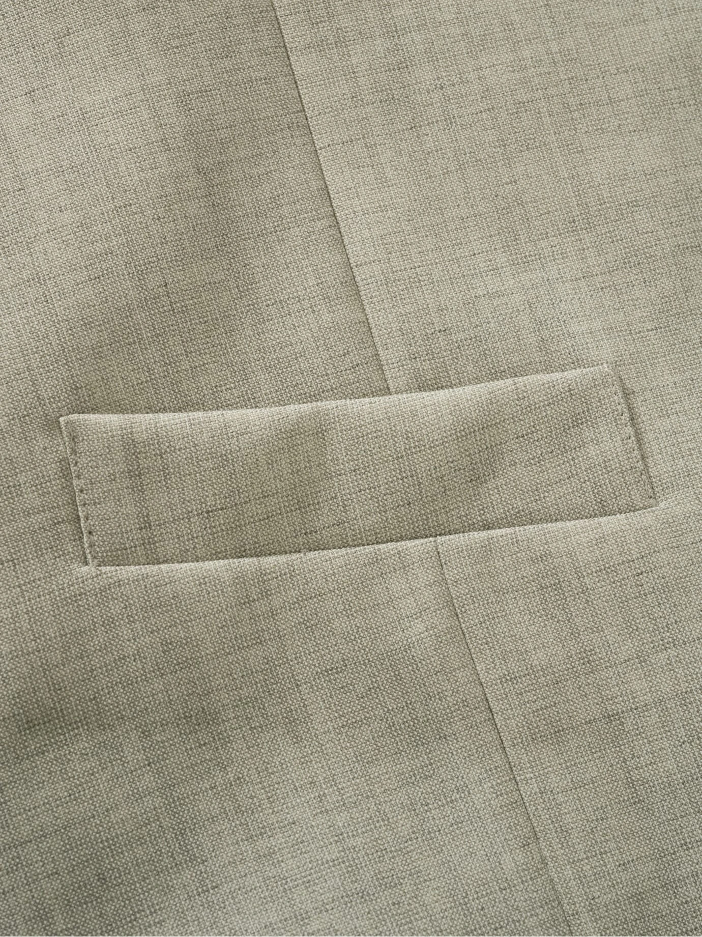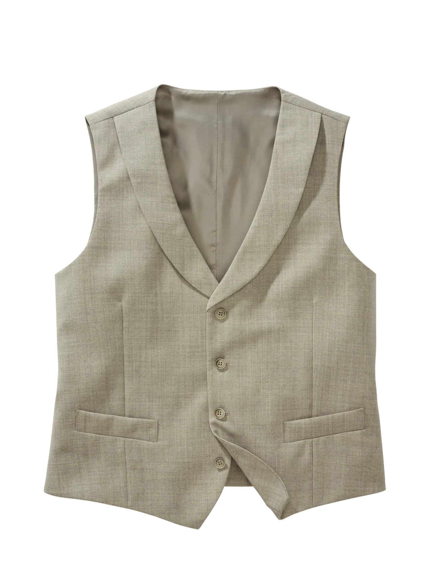 Verarbeitung: Mit Schalkragen und stoffgleichem Rücken, also ohne Sakko tragbar (absolute Ausnahme für Hochzeitsanzüge). Verstellbarer Rückenriegel. Zwei Leistentaschen. Slim Fit.