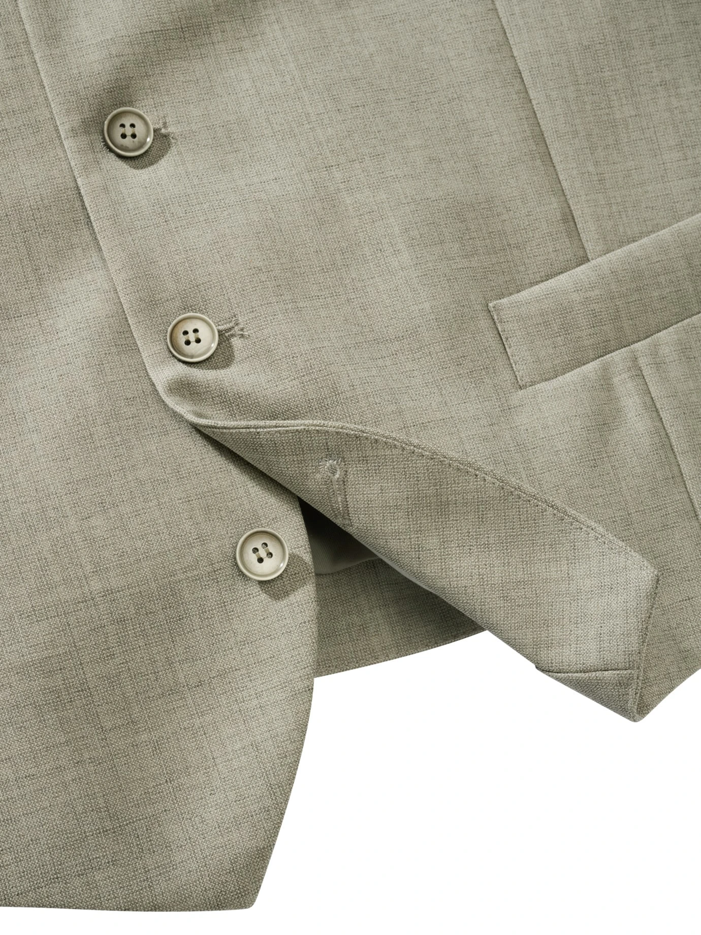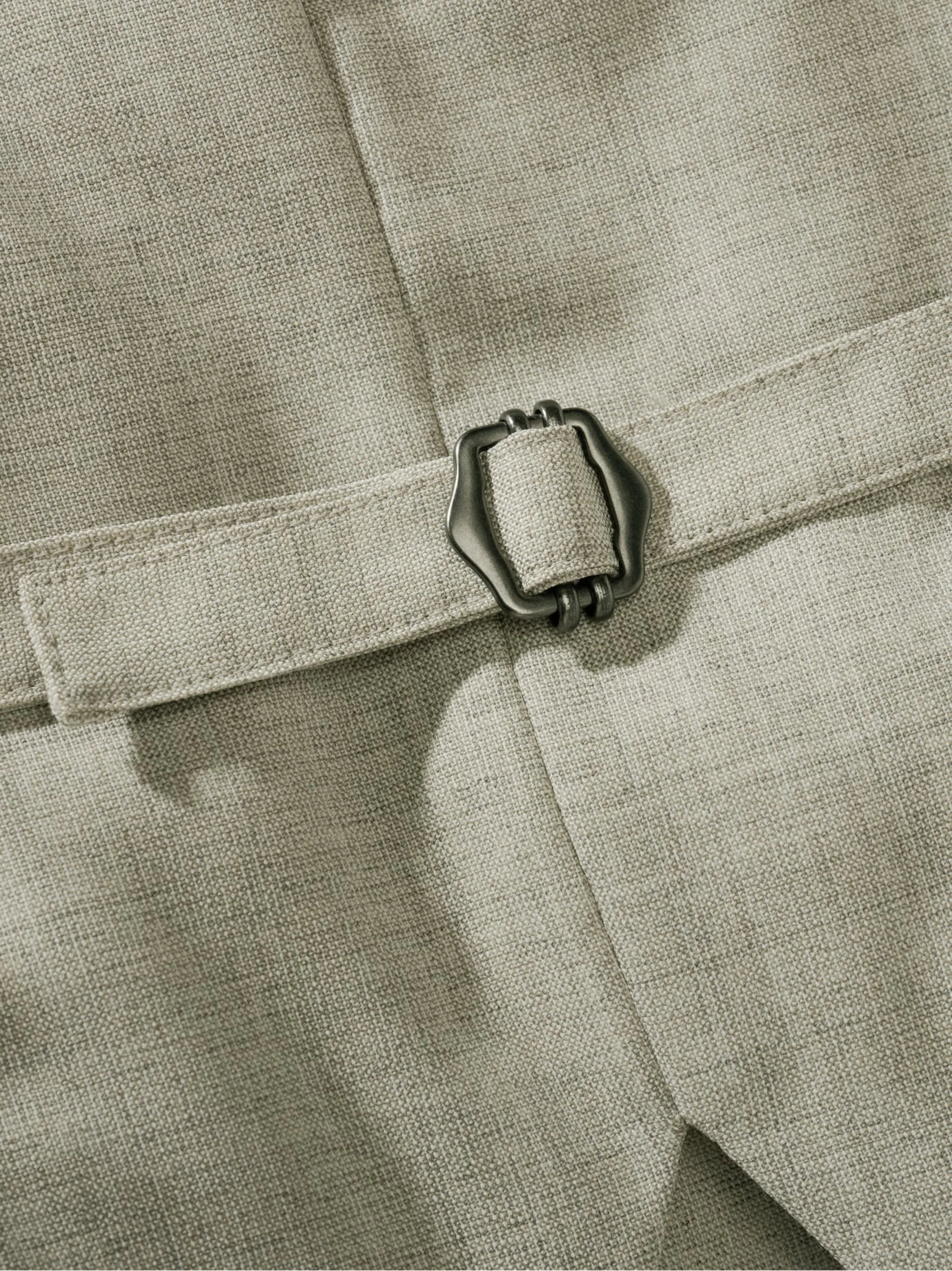 So antworten Sie jetzt mit „Ja“. Diese Weste stammt aus dem Baukasten des Ja-ich-will-Anzugs. Zur Hochzeit natürlich als Dreiteiler getragen, mit passender Hose (Nr. 24-6811-6) und Sakko (Nr. 24-6809-3). Die Weste funktioniert aber auch solo für den Brautvater oder andere Gäste mit einem farblich abgesetzten Sakko drüber. Dann wählen Sie z. B. die smarte Kombination mit weißem Stehkragenhemd und Einstecktuch. Der Stoff stammt von Vitale Barberis, naturelastische Schurwolle, die beim Tanzen die nötige Bewegungsfreiheit gibt und Sie über den Abend hinweg nicht ins Schwitzen kommen lässt.