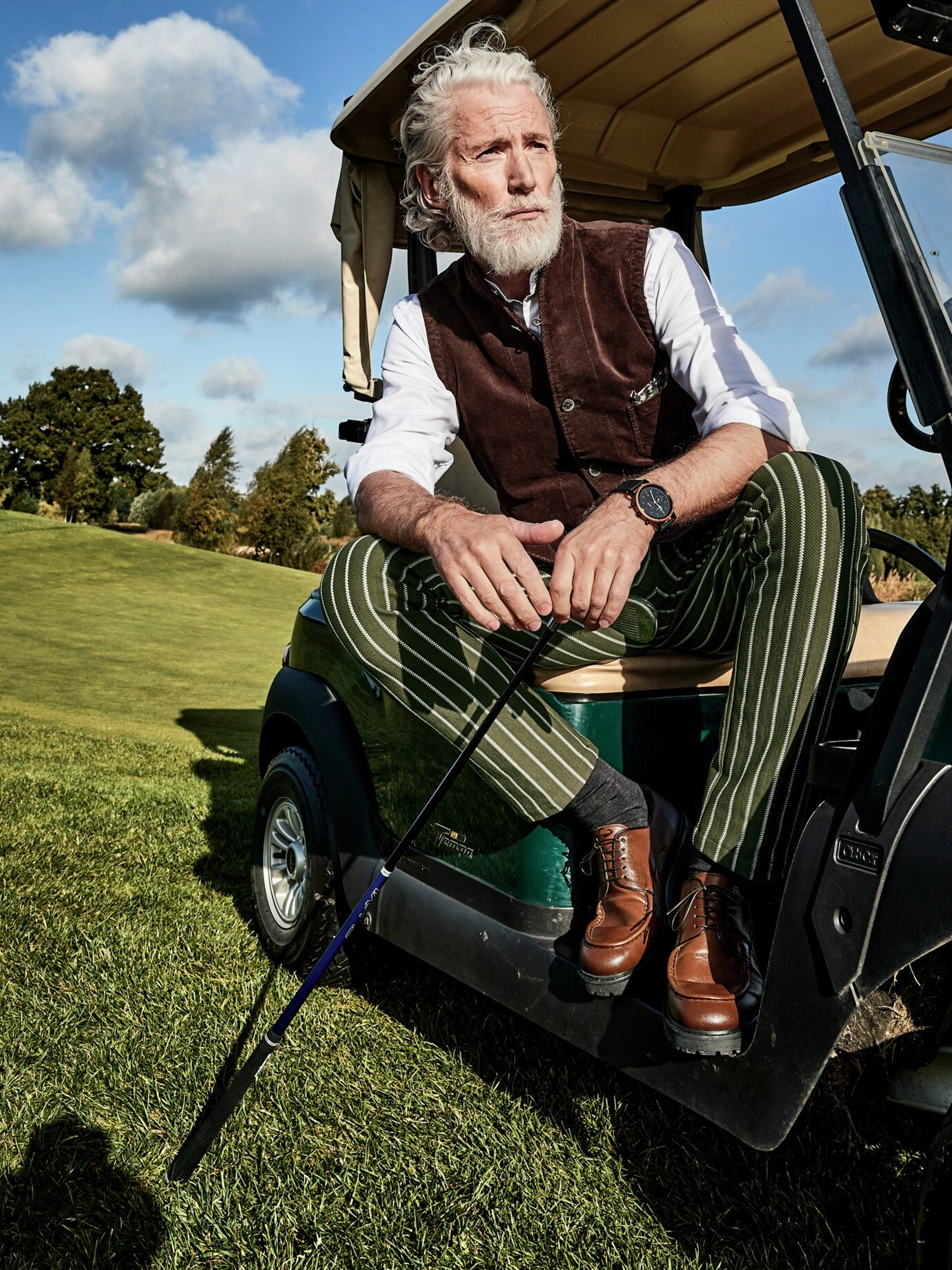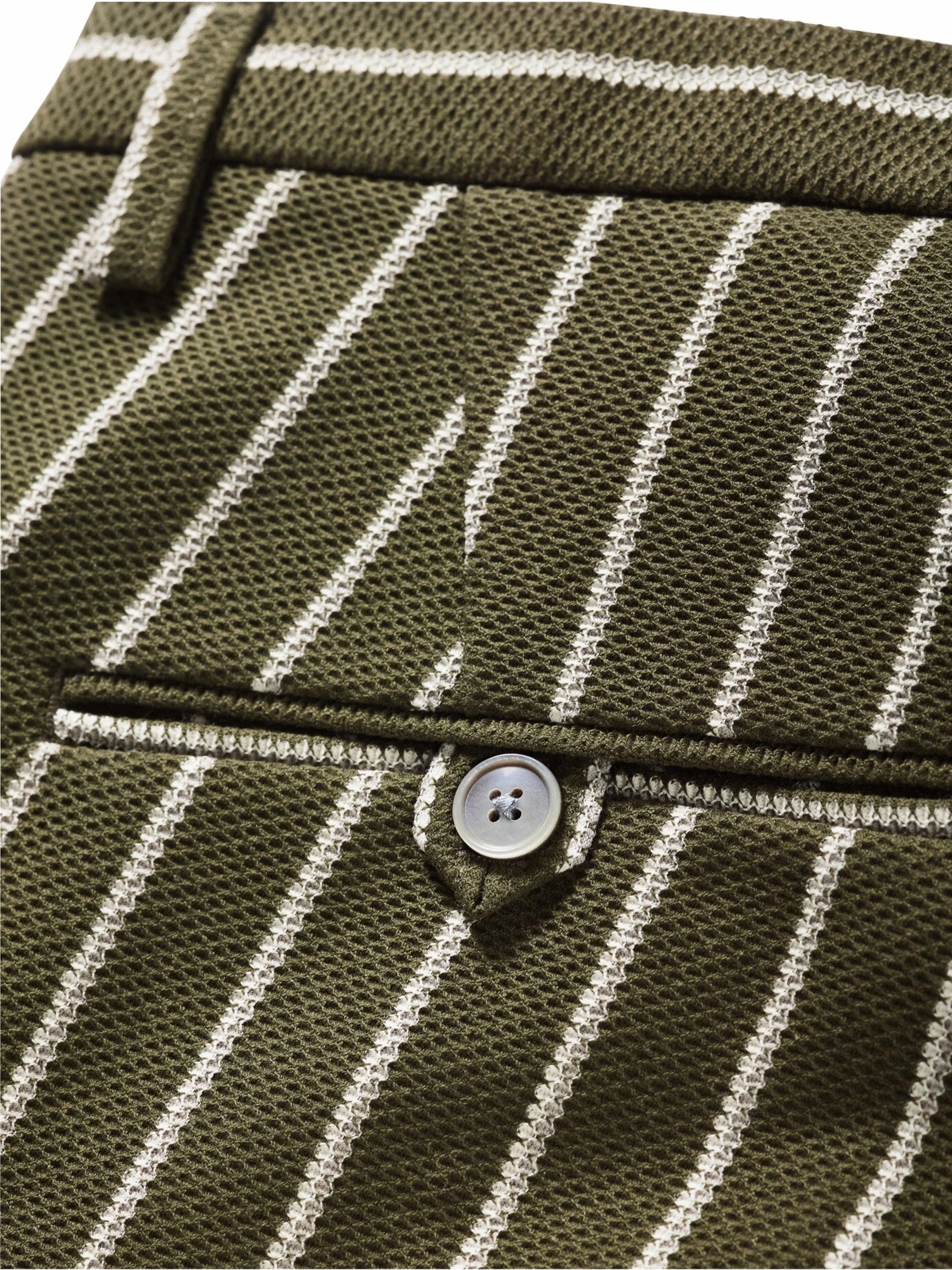 Steht nicht auf dem Balkon, sondern mitten im Geschehen. Die Farbe und Kaktus-Struktur der feinen Streifen sorgen auf jeder Party für Gesprächsstoff. Wichtige Info für Sie: Die Hose fühlt sich gut an, fast wie selbstgestrickt. Die Materialmischung fällt locker, hat einen festen Stand und knittert nicht. Ihre ernsthafte Seite zeigt die Hose bei der Verarbeitung: zwei französische Taschen vorne, zwei geknöpfte Taschen hinten, farbige Paspel im Bund. Damit beim Outfit alles im grünen Bereich bleibt, empfehlen wir ein Hemd oder Shirt in neutralen Farben und für den vollen Show-Effekt das passende Sakko (Nr. 24-6291-6).