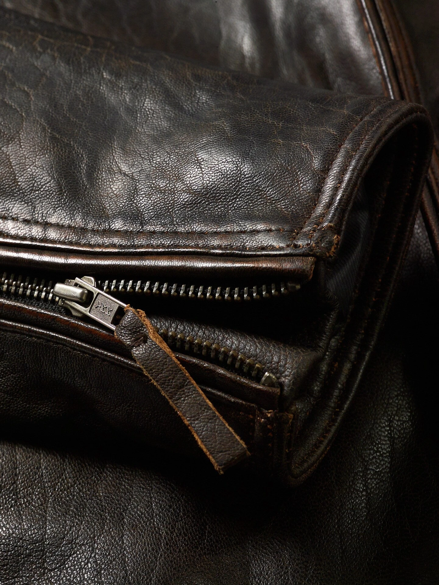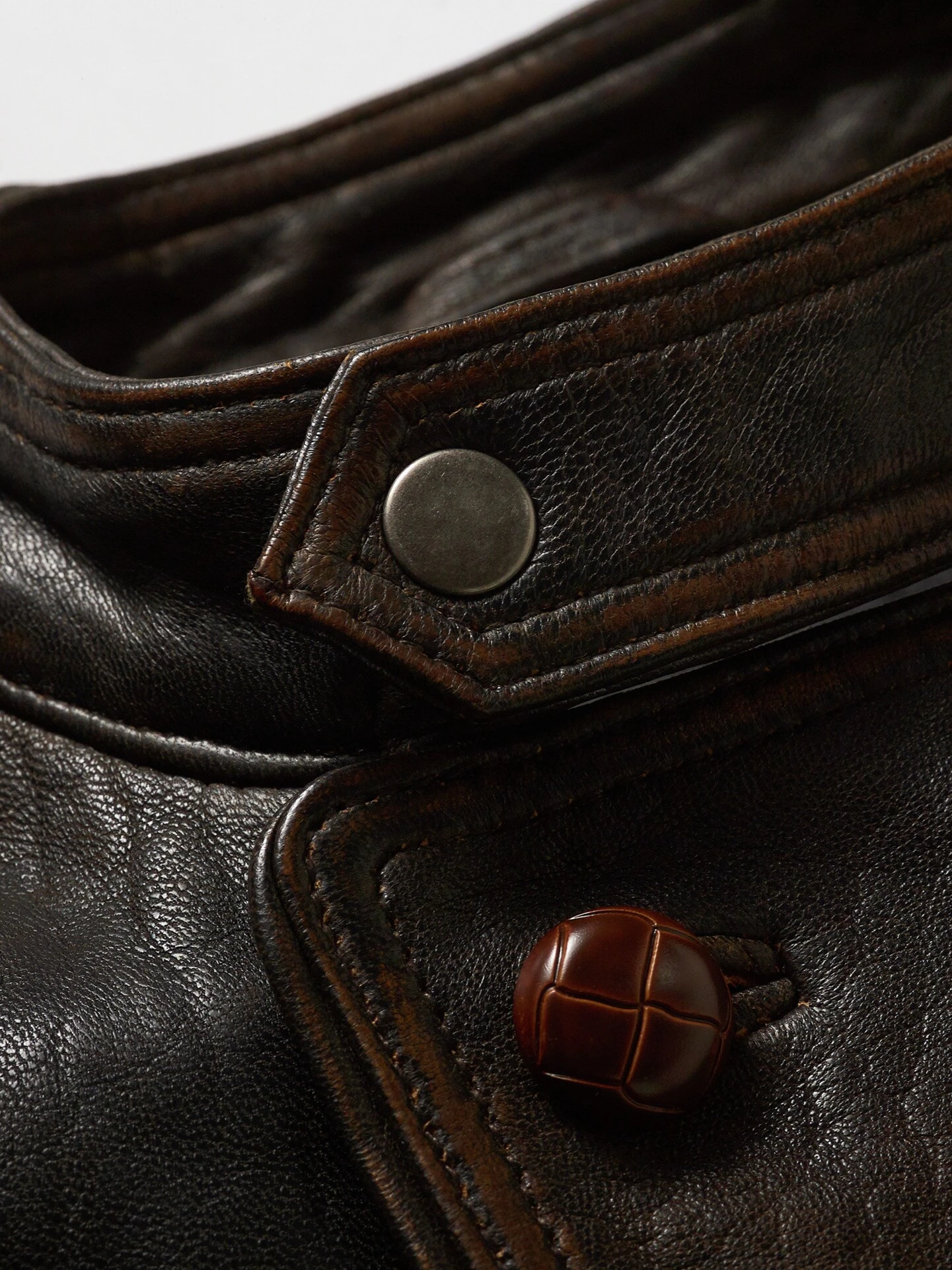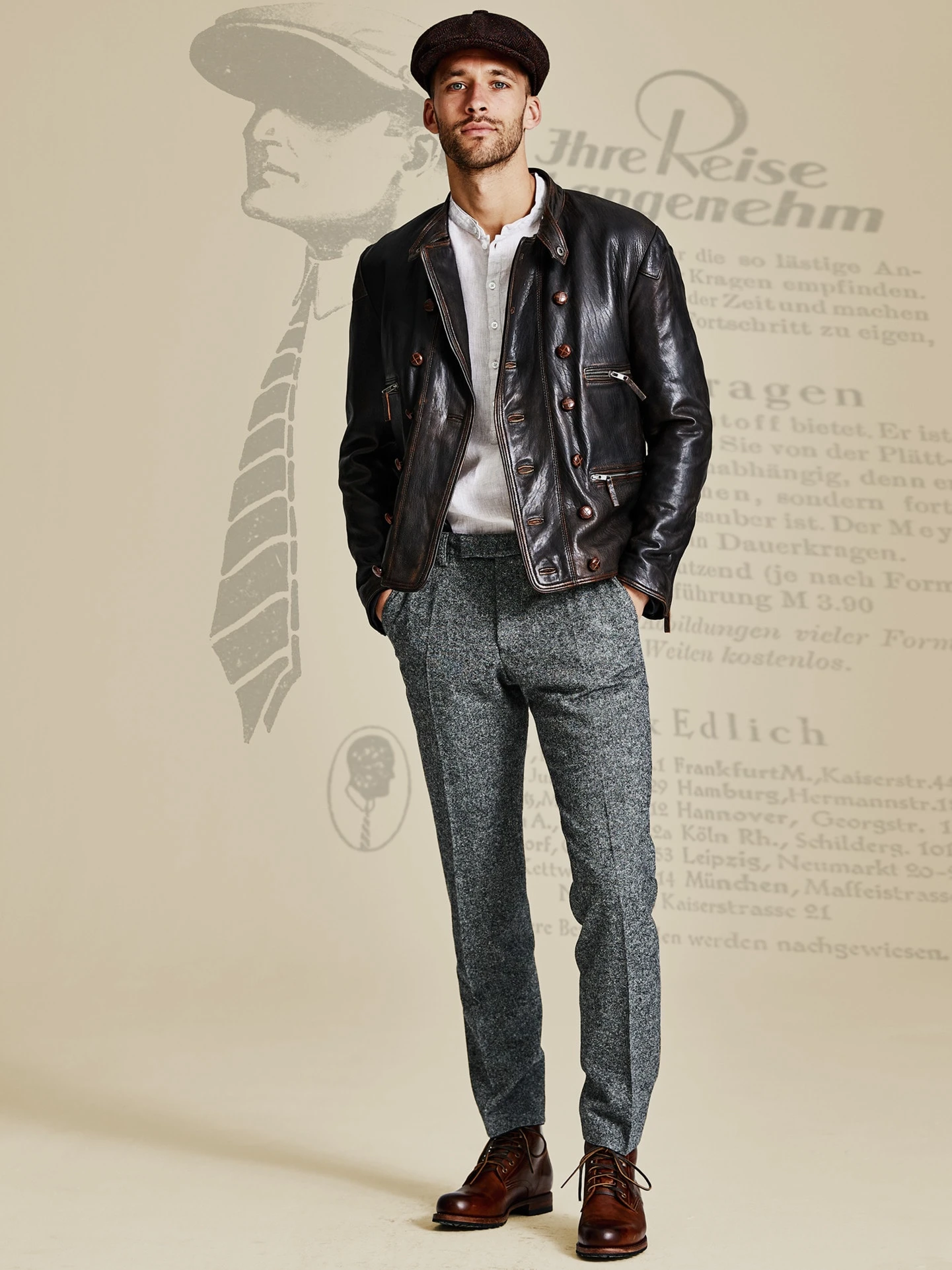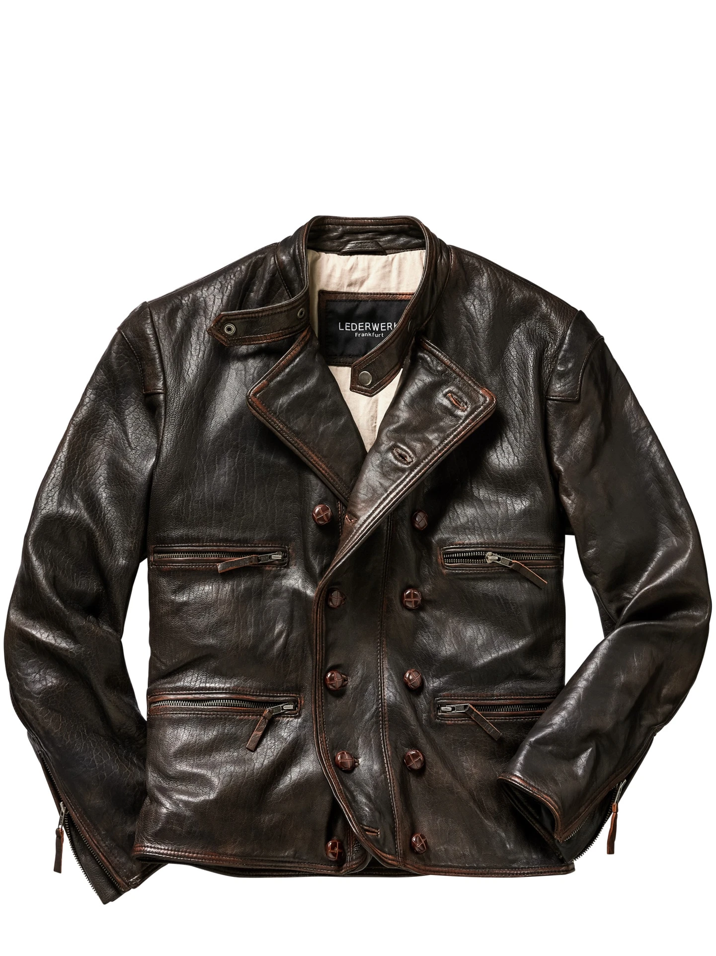 Leder wie früher: derb und unverwüstlich und heute nur noch schwer zu finden. LEDERWERK setzt bei seiner Salzburg auf beeindruckende Qualität: Das robuste Lammnappa stammt aus Neuseeland und schon beim ersten Griff merken Sie dem Leder südpazifisches Klima und Weiden auf grünen Wiesen an. Anschließend wird eine Patina veranlasst, die dem Leder seine geforderte Weichheit bewahrt und es ordentlich stumpf, fast abgegriffen und charaktervoll macht. Unerschrocken an kalten Tagen: Die 1,3 Kilo derbe Jacke trägt zur Isolation unter ihrem leichten Baumwollfutter statt eines üblichen Fleece einen Acrylschaum, der haltbar wärmt, aber weniger aufträgt. Im Ganzen kürzer geschnitten, durch ihre Knöpfe und den kastigen Schnitt hat sie etwas von Tracht, stilistisch dank Sturmlasche dann etwas von Motorrad.