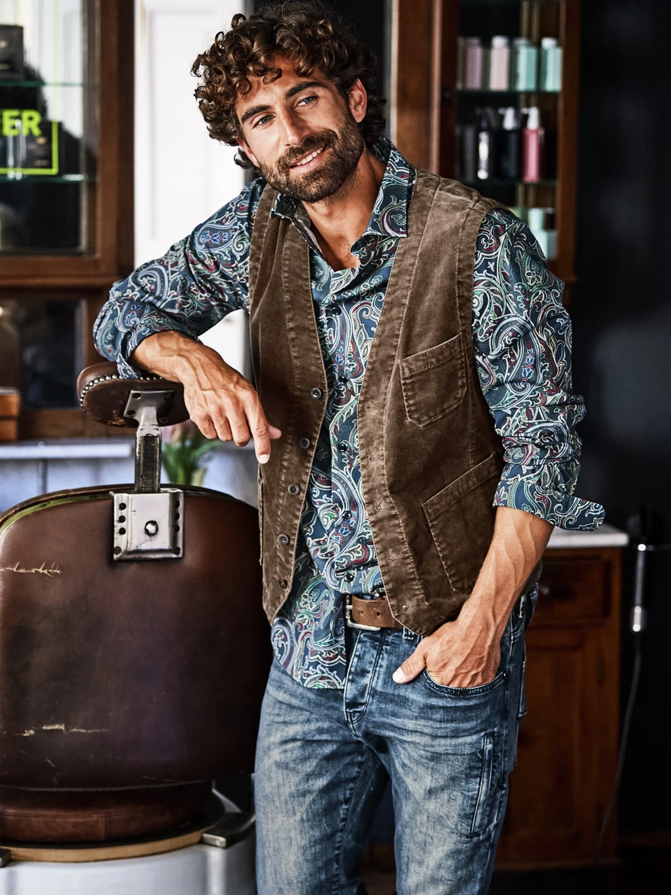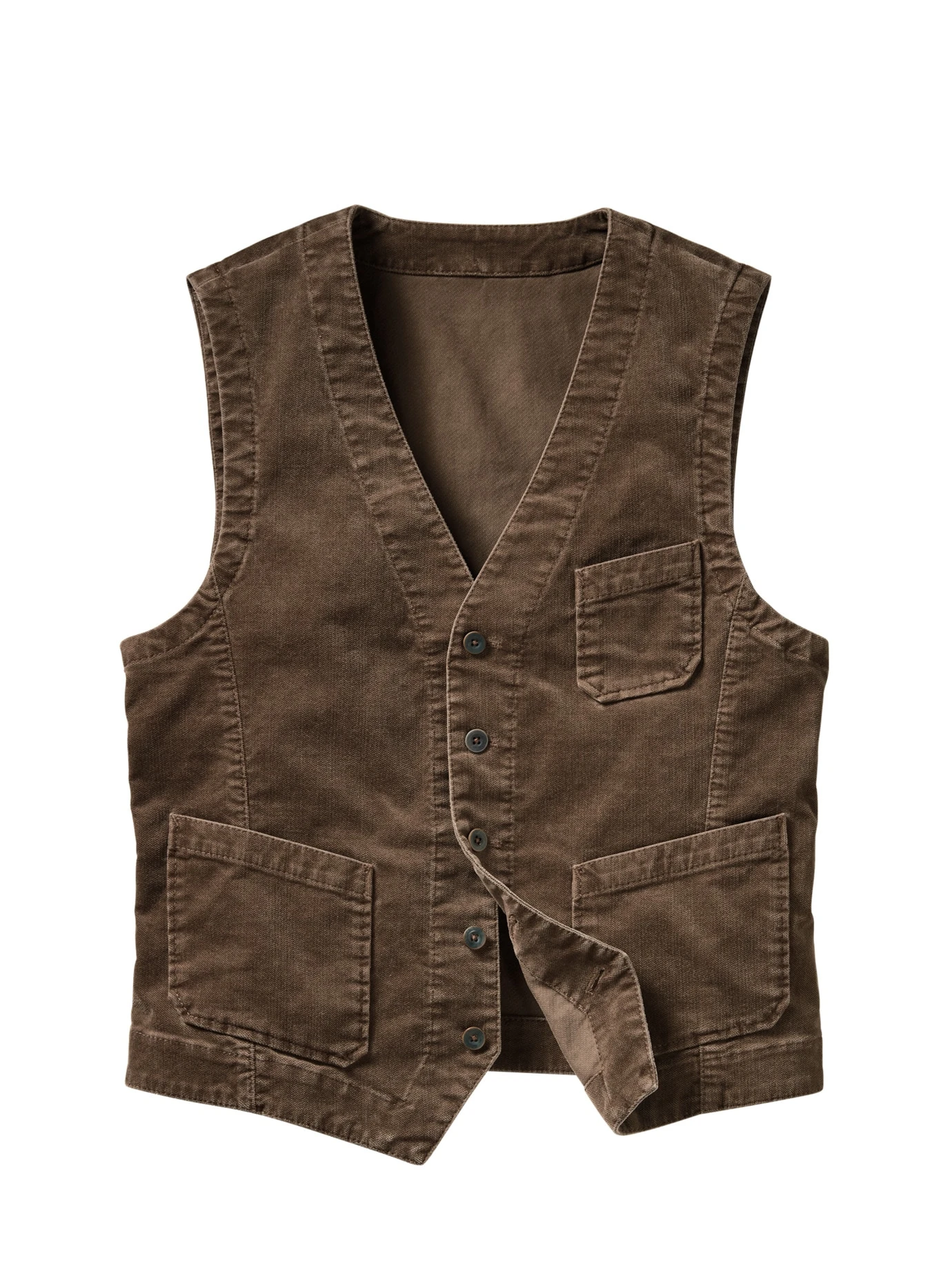 Eine Weste ist immer das My smarter, My lockerer, My kreativer. Eben weniger offiziell als ein Sakko und sieht dabei angezogener aus als ein Hemd allein. Sie bewahrt Platz für ausfallende Bewegungen und große Gesten. Der unempfindliche Samtcord stammt von Velcorex aus Frankreich und erinnert an ehrliche Arbeit. Diese brauchte robuste Kleidung, in der die Lohntüte schnell in einer der Taschen verstaut war. Getragen über Hemd oder Longsleeves, am liebsten zu Denim und auch auf Reisen einplanen – sie knittert nicht und tunt Ihr Outfit schnell, wenn der Weg von Messe via Hotelzimmer samt Espresso zum Abendessen führt.