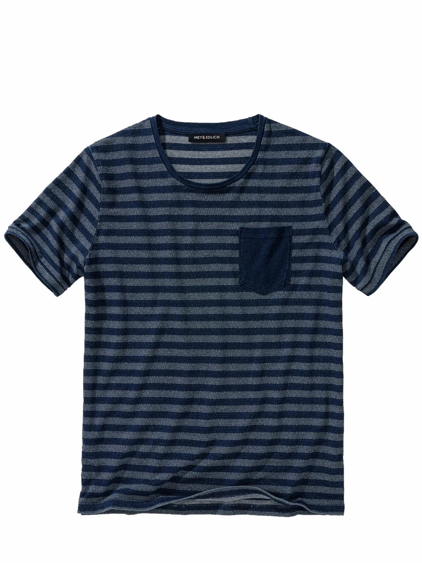 Für richtig große Abenteuer. Die eh immer im T-Shirt passieren. Dieses weckt Erinnerungen an Lindgrens Blomquist und die Tage, an denen Sie selbst mit meisterdetektivischen Fähigkeiten um die Häuser zogen. Natürlich mit Brusttasche, damit Lausbuben-Notizen versteckt werden können. Wirkt so original wie damals, da es indigogefärbt ist. Lebt mit, verblasst leicht und den Fingerzeig liefert es wie früher obendrein: zu Beginn bitte helle Polster meiden, kann leicht abfärben.