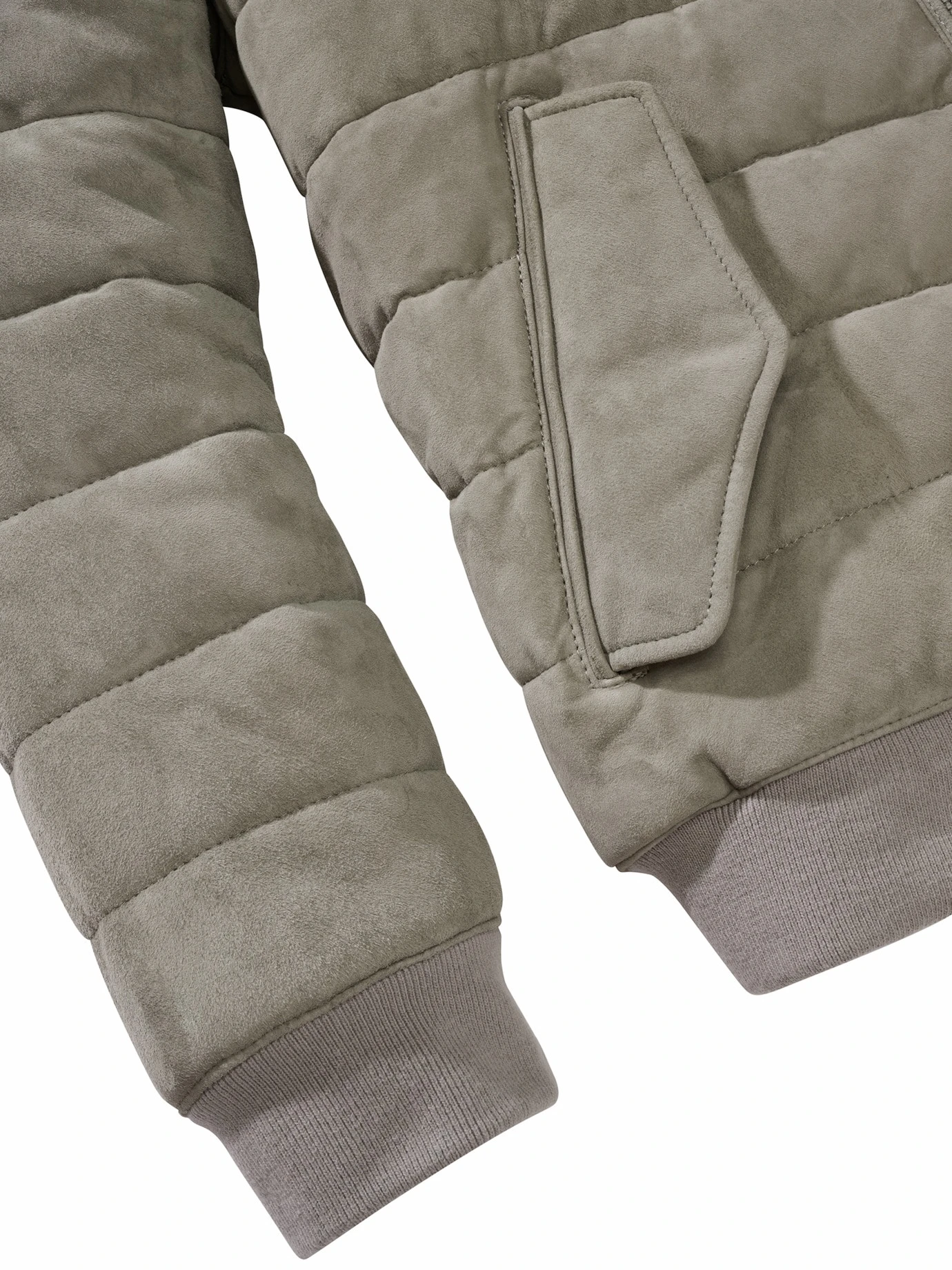 (Fast) ausgefallen: London Fog. Ein heller, aber unempfindlicher, warmer Grauton, der für Lederjacken noch ungewöhnlich ist, da der Kontrast zu schwarzer Hose häufig zu hart ist. Diese ist gearbeitet aus butterweichem Ziegenvelours. Zusätzlich gesteppt, damit harte Winterstürme eintreffen können. Strickbündchen verhindern, dass der Wind drunterkriecht. Die Blinddrücker halten den Kragen gut verschlossen. Zusätzlich ist das Leder fein imprägniert, damit hält die Jacke Nebel samt leichtem Sprühregen ab. Mehr nicht. Mehr will aber auch keiner.