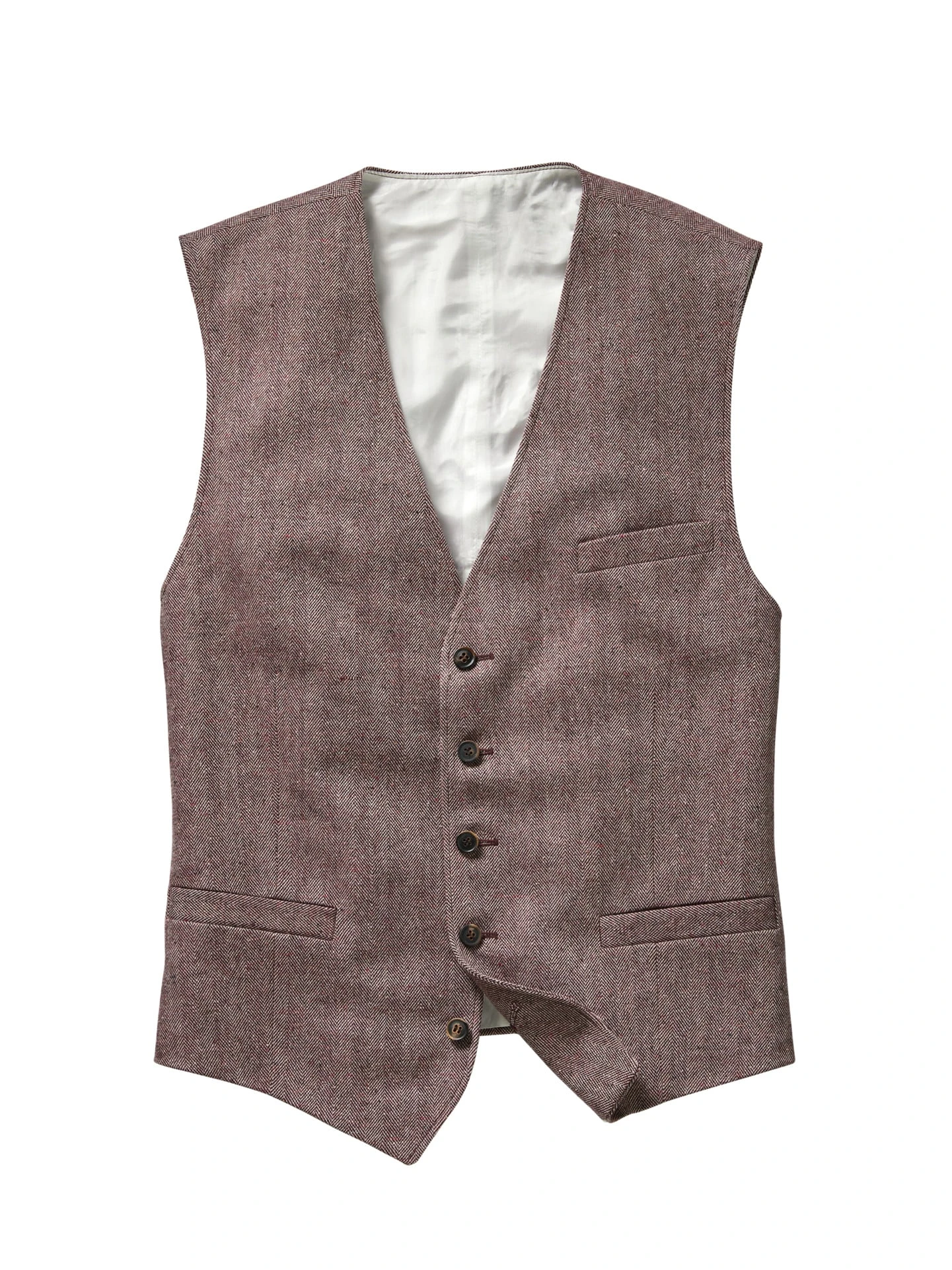 Ursprünglich gehörte die Weste verbindlich zum Anzug. Heute geht es auch ohne richtig gut, weil Weste plus weißes Hemd oder Shirt modisch total angesagt ist. Diese ist aus Wolle und feiner Seide, gewebt in Florenz, stilecht als kerniger Tweed mit den kleinen Noppen.