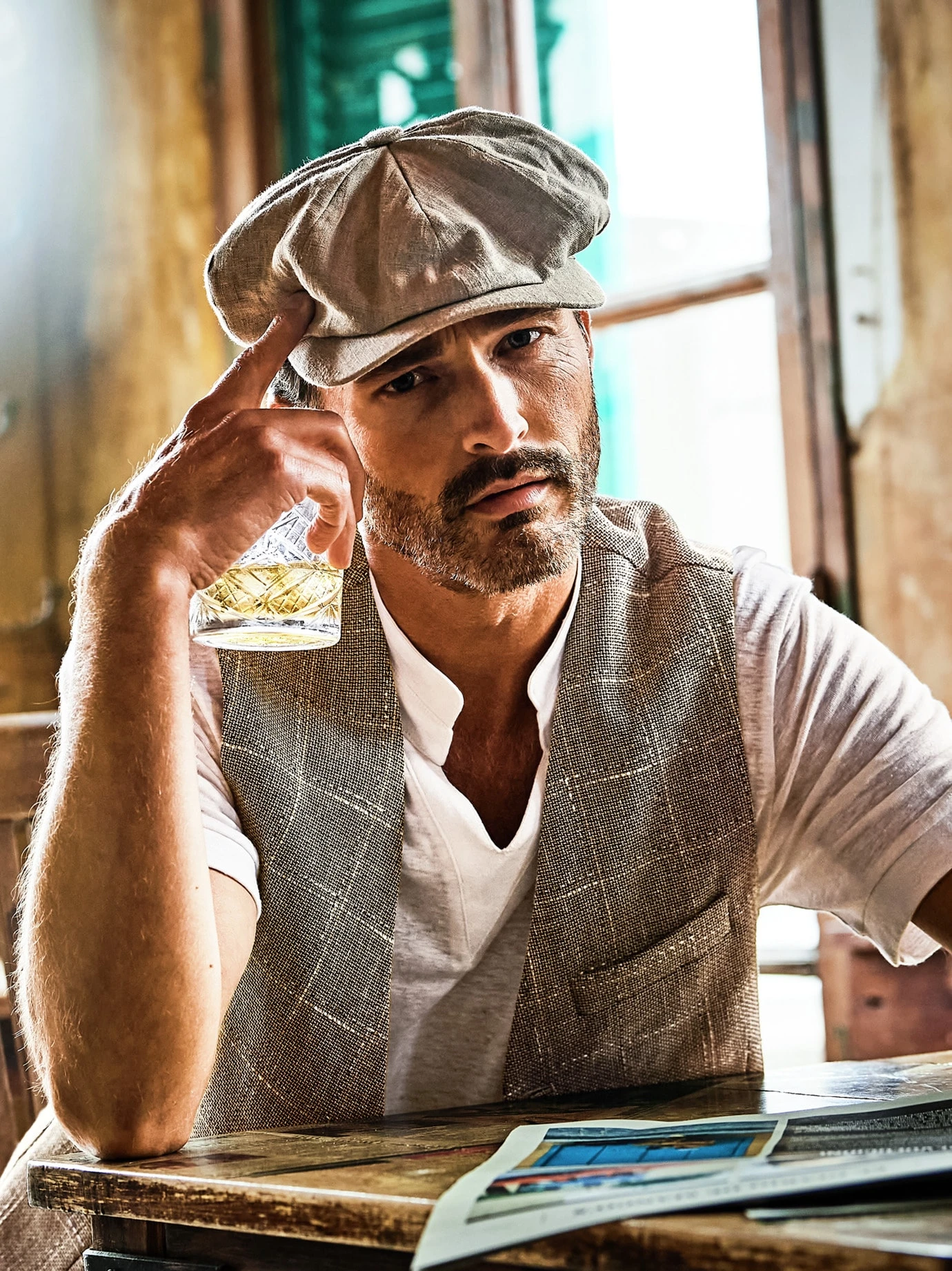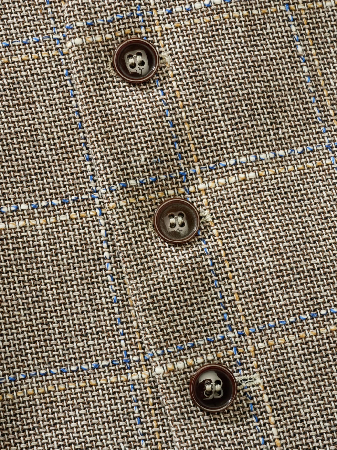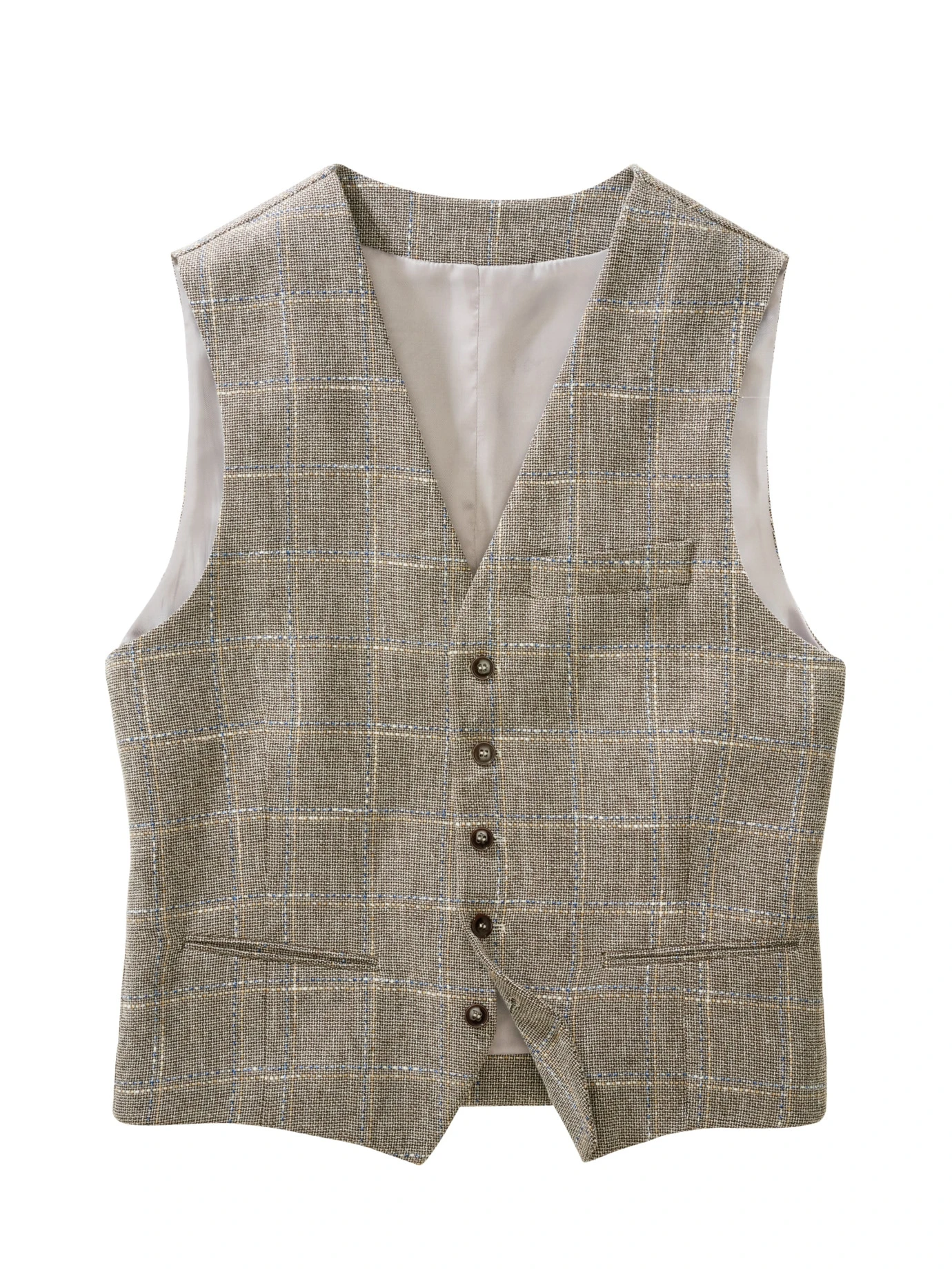 Voller Optimismus. Voller Unabhängigkeit. Diese Weste ersetzt im Sommer das Sakko. Sie ist komplett aus einem italienischen Gewebe, bestehend aus weicher Baumwolle, kühlendem Leinen und einem Schuss stabilisierendem Polyester. Eine Kombination, die in der Nachmittagshitze wie auf der Tanzfläche ideal ist. Das Fensterkaro strahlt Offenheit und Optimismus aus und passt zu hellgrundigen Hemden samt Chino (festlich), legerer mit T-Shirt, Leinenhose oder heller Jeans.