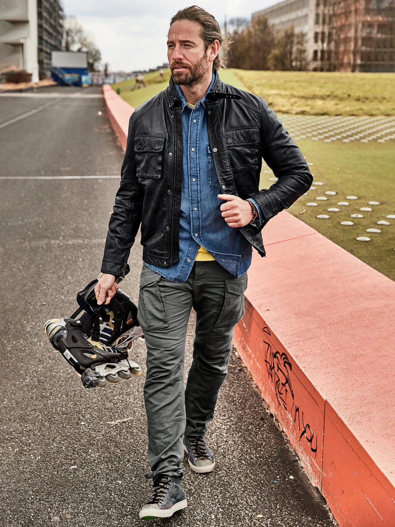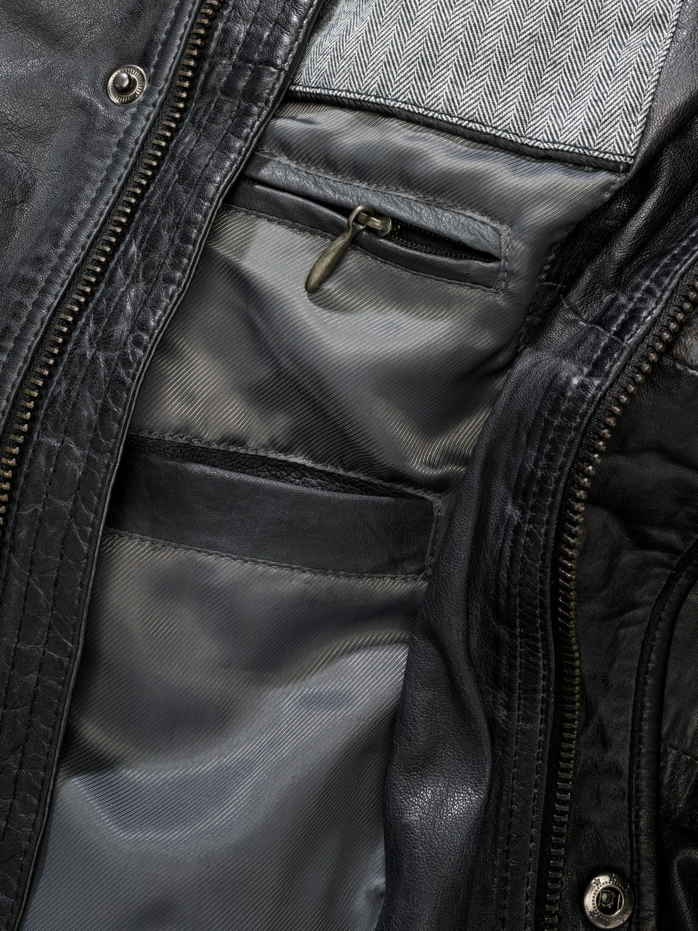 Hat tausend Geschichten auf dem Tacho. Das Lammnappa sieht aus, als wäre es schon länger mit Ihnen auf Tour. Für den Used-Effekt hat das butterweiche Leder nach dem Nähen einige Runden in der Waschmaschine gedreht. Leichte Farbabweichungen sind möglich und erwünscht, sie machen jede Jacke zum Unikat. Die betonten Schultern, der Sturmriegel am Stehkragen und der kurze Schnitt bringen das Bikerfeeling auch im E-Auto rüber. In die großzügigen Taschen passen Portemonnaie, Schlüssel und die Liste für den Einkauf, den Sie erledigen, während der Wagen an der Ladestation steht. Die authentische Lederjacke matcht mit allem Kernigen wie Jeans und Pullover, Hemd oder Hoodie. Dazu sportliche Schuhe oder Boots.