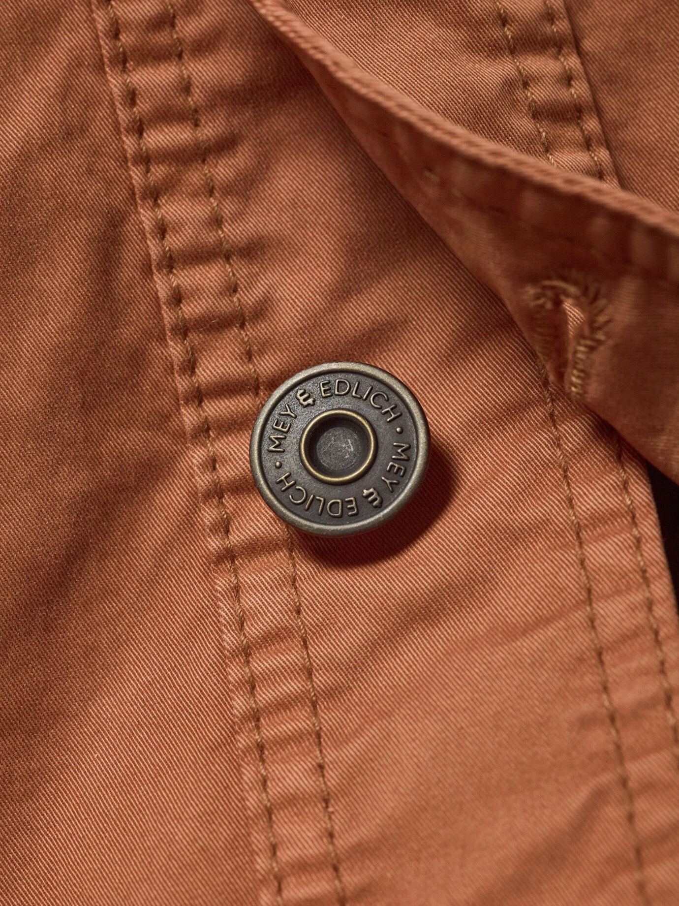 Pronto per tinto. Zu Deutsch: bereit zum Färben. Diese leichte Sommerjoppe ist ein Stückfärber und wird entsprechend im Rohzustand konfektioniert und dann erst im Ganzen gefärbt und gewaschen. Vom Schnittansatz her eine typische Arbeitsjacke, mit üppigen, aufgesetzten Taschen. Luftiger und bewusst ungefüttert, so trägt sie sich auch gut an Sommerabenden. Den Gesamtlook verfeinern die authentischen Jeansknöpfe, als Verschluss und an den Ärmeln. Als sommerlicher Überzieher zur kurzen Hose genauso gut wie zur Jeans. Perfekt zum leichten Pullover oder mit Shirt. Dazu passen sportliche Schuhe.