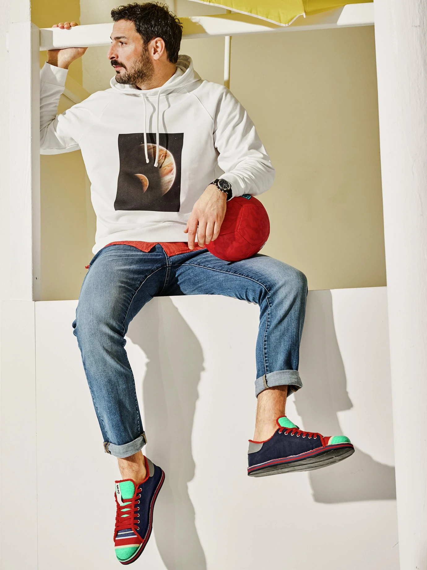 Mehr Space im Kopf. Dass es auf dieser Welt immer enger wird, kann man auch mögen, weil man so viele Leute kennenlernt. Für gelegentliche Auszeiten bieten sich die unendlichen Weiten und der nicht genutzte Raum im Kopf an. Dieses Kapuzen-Sweatshirt soll Motivation und Aufforderung sein, genau das zu tun. Einfach mal über den Schüsselrand gucken. Und – der größte Spaß – es mit anderen teilen. Wer dennoch für sich bleiben möchte, nutzt die schöne große Kapuze.
