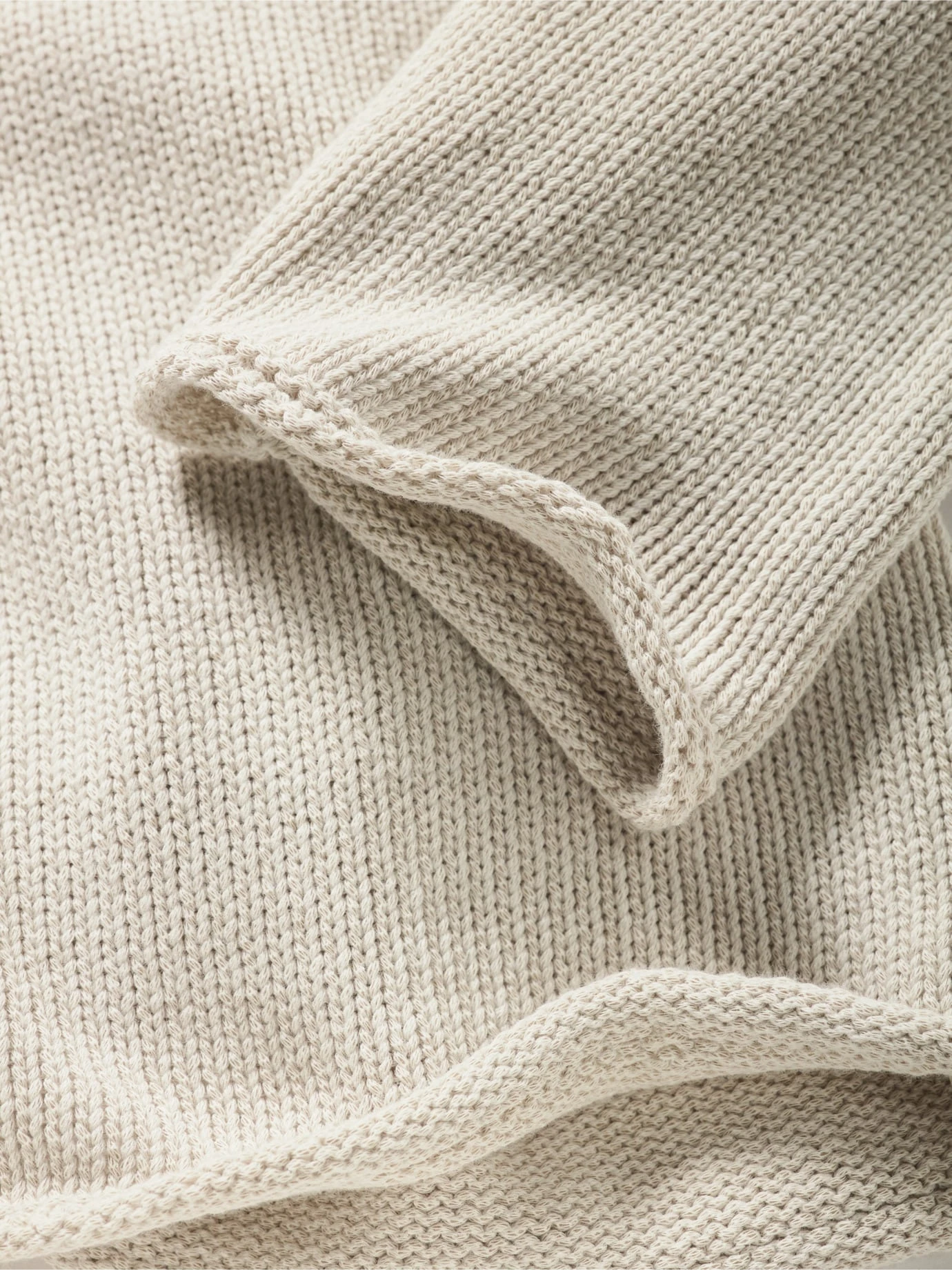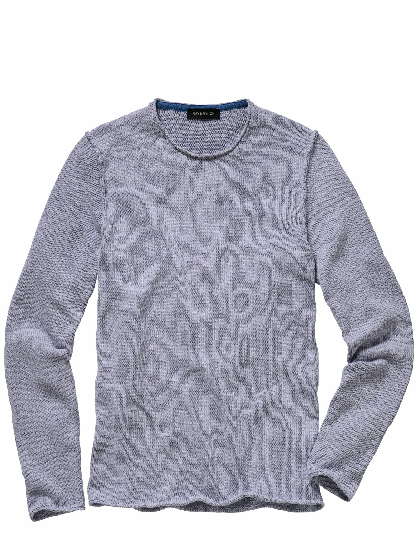 Macht Positiv-Schlagzeilen. Er drängt sich nicht ins Bild, die Rollkanten weisen dezent darauf hin, dass in ihm ein modisch informierter Kopf steckt. Mit 5 Gauge ist der Pullover etwas gröber gestrickt. Der hohe Baumwollanteil im italienischen Garn gleicht den Temperatursprung vom Außentermin zum Innenraum aus, die Hightech-Fasern bringen Ausdauer und Stabilität. Ins Café mit Jeans oder Chino, zur Lesung unter dem Anzug.