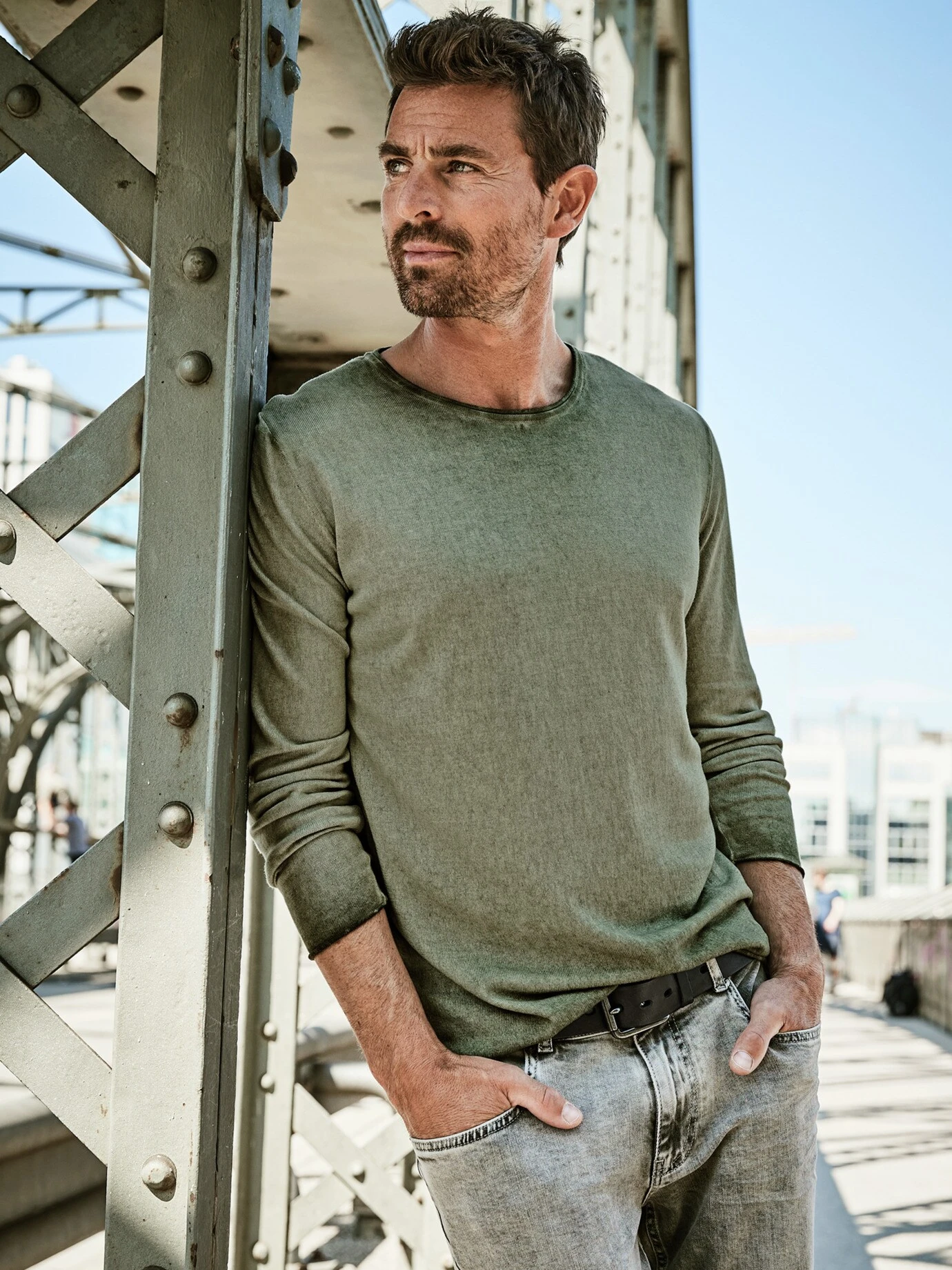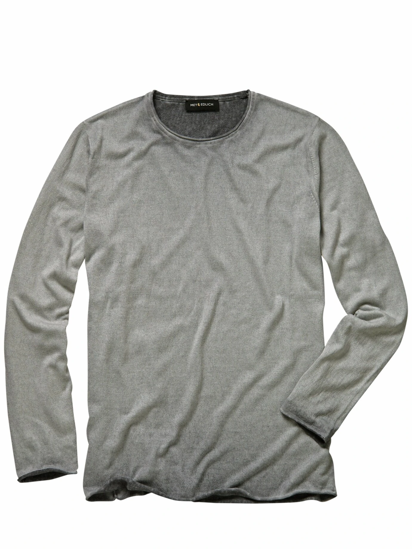 Schattiges Design. Mehr Tiefe, mehr Geschichte, mehr Charakter, den perfekten Used-Look trägt dieses Shirt vom ersten Tag an. Die wolkige Färbung verleiht dem Strickshirt ein astreines Image. Einmal angezogen liegt es so leicht auf der Haut, Sie werden es kaum spüren. Die weichfließende Viskose fühlt sich eh am besten direkt auf dem Körper an, die nötige Standfestigkeit verleiht die Baumwolle. Passend zum Image sind die offenen Rollkanten. Den kernigen Look rundet Raw Denim ab.