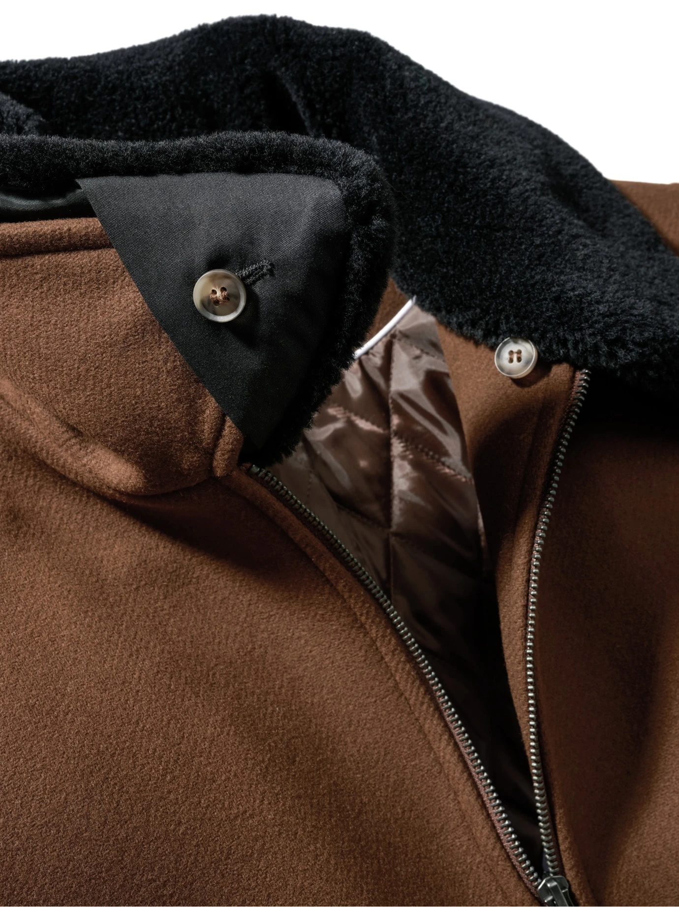 Die Antwort auf nautische Expeditionen. Seit neun Jahrhunderten liefern die Schafe der Salzwiesen die ideale Wolle zur Ausrüstung, um Matrosen und Fischer bei stürmischen Expeditionen warm zu halten. Saint James fertigt daraus jetzt einen Blouson, der auch in urbaner Szenerie Wertigkeit ausstrahlt. Damit die Jacke dauerhaft Wind trotzt, geben sie dem Wolltwill zusätzlich ein Drittel Polyester hinzu. Der abnehmbare Teddykragen ersetzt den Schal, die Gummirippbänder an Bund und Ärmeln lassen keinen Wind durch. Neue Farbgebung: Das satte Rostbraun liefert den guten Akzent zu gekrempelten Chinos samt Rollkragen.