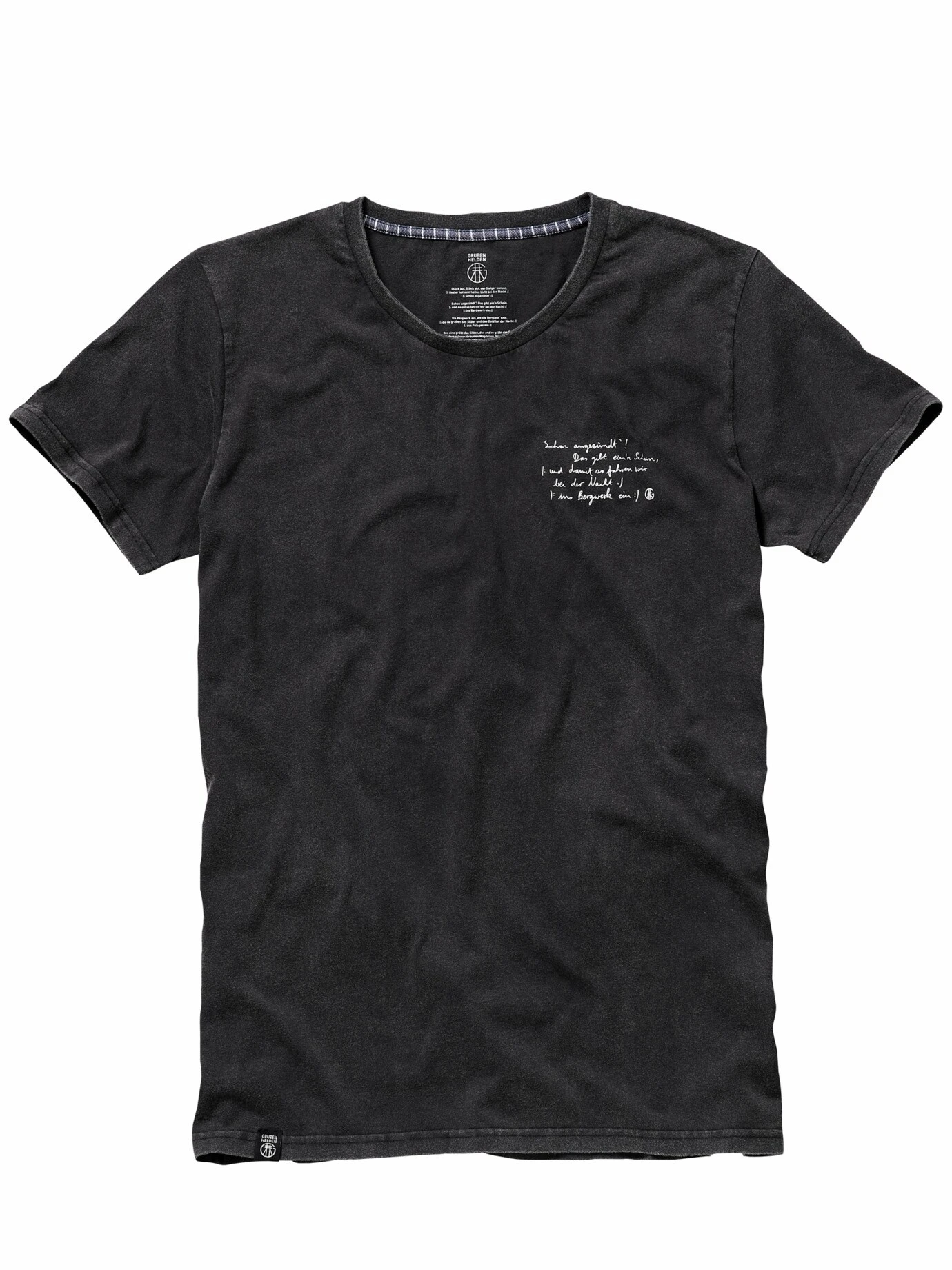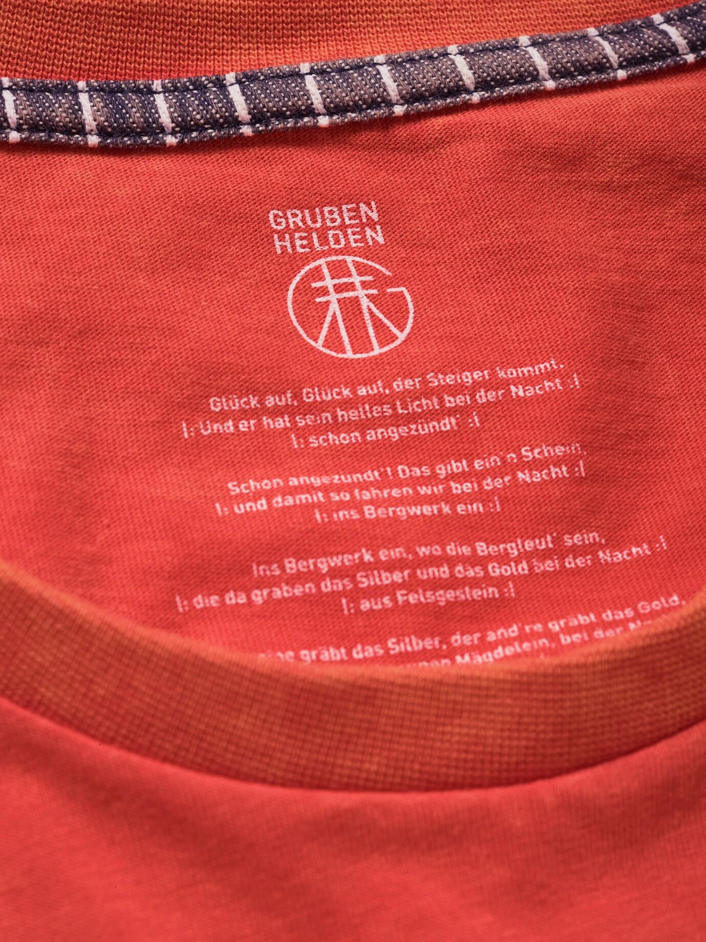 Eine Hommage an die Hoffnung. Zusammenhalten, füreinander einstehen, niemals aufgeben – die Werte aus dem Pott sind aktueller denn je. Die GRUBENHELDEN erinnern mit diesem Shirt daran. Auf der Brust trägt es eine Strophe des Steigerliedes, das Necktape im Ausschnitt ist zusätzlich mit echtem Bergkittelstoff ausgestattet. Die moderne Glückauf-Botschaft unterstreicht dann der feste portugiesische Baumwolljersey.