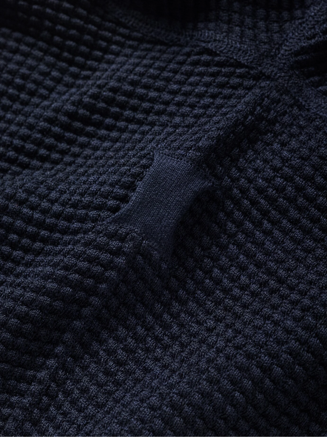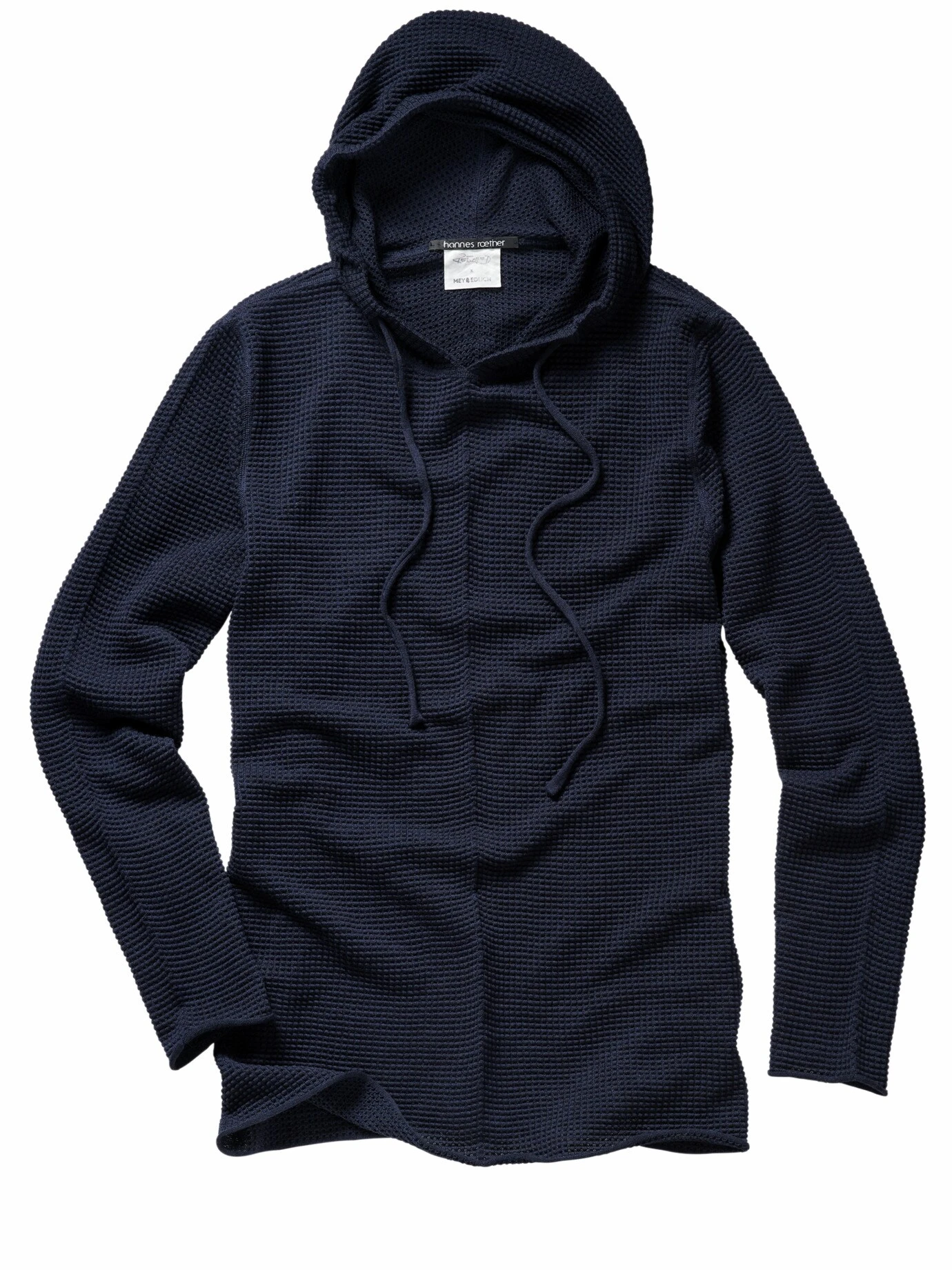 Wäre ein Sammlerstück – würde er nicht so unheimlich gern angezogen, der hannes roether-Strickhoodie mit feiner Waffelstruktur. Er vereint nicht nur die Sportivität eines Kapuzensweaters mit dem angezogenen Look eines Pullovers. Noch überraschender ist seine Leichtigkeit, basierend auf einem sehr limitierten, von hannes roether neu aufbereiteten Garn aus südafrikanischer Wolle. Deren ohnehin schon temperaturausgleichende Eigenschaften wurden nach allen Regeln der Strickkunst nochmal verfeinert. Weshalb der Strickhoodie jetzt auch mal unters Sakko passt. Limitiert auf 150 Stück.