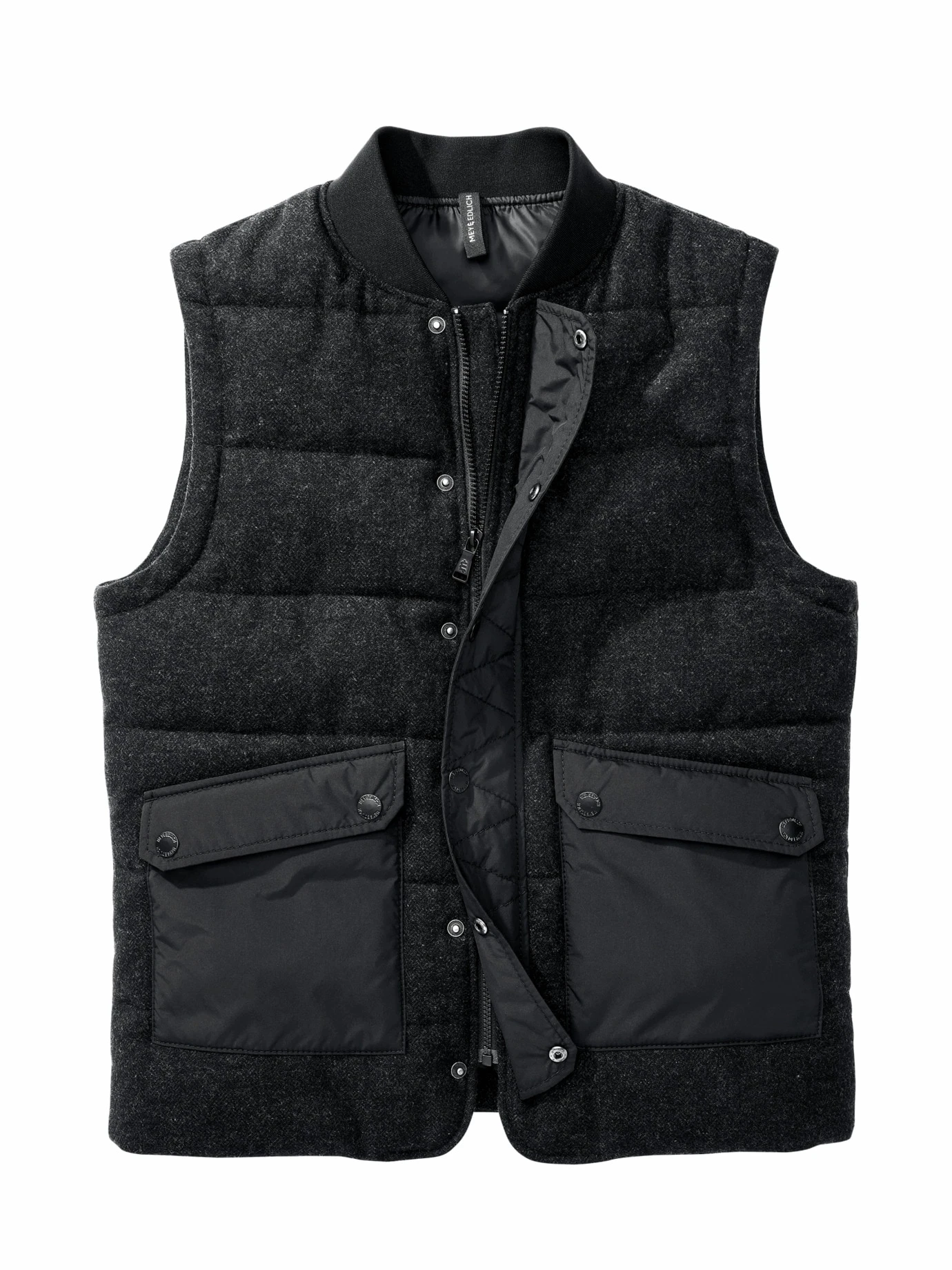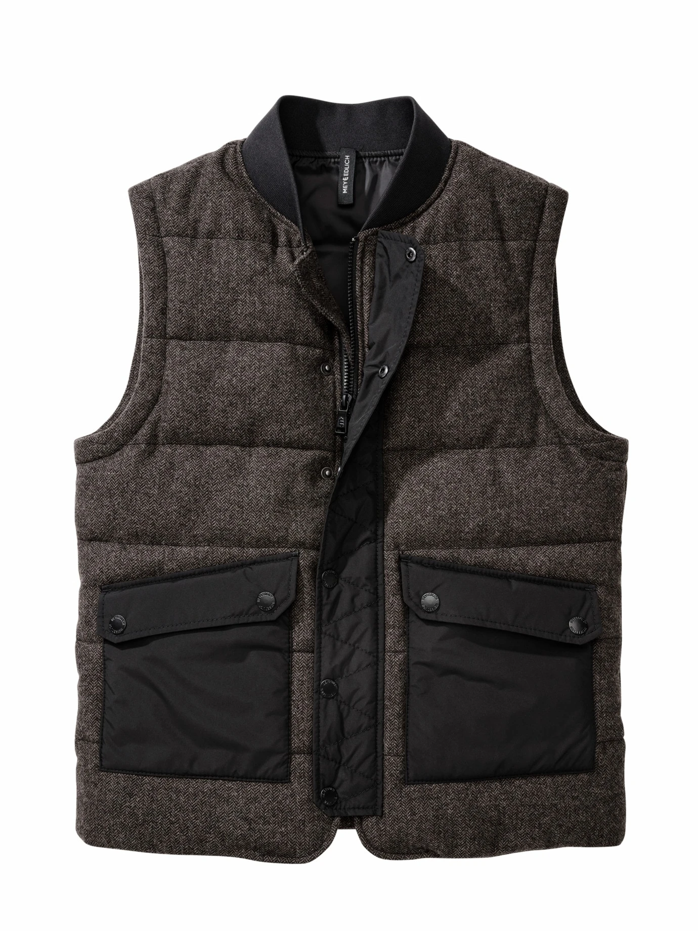 Der Wärmeboost, wenn die Natur einen Gang zurückschaltet. Wenn Temperaturen Achterbahn fahren, trotzen Sie in diesem kernigen Bodywarmer allen Unwägbarkeiten. Dafür liefert der italienische Wollstoff den Wärmeausgleich, der optisch an Fischgrat erinnert und die Weste so wohltuend von all den sonst glatt gesteppten unterscheidet. Im Kammernsystem verbirgt sich ein Hightech-Futter, das Wärme am Körper hält. Überzeugend mit Pullover oder Sweatshirt, passt genauso als Eisbrecher unter den Mantel.