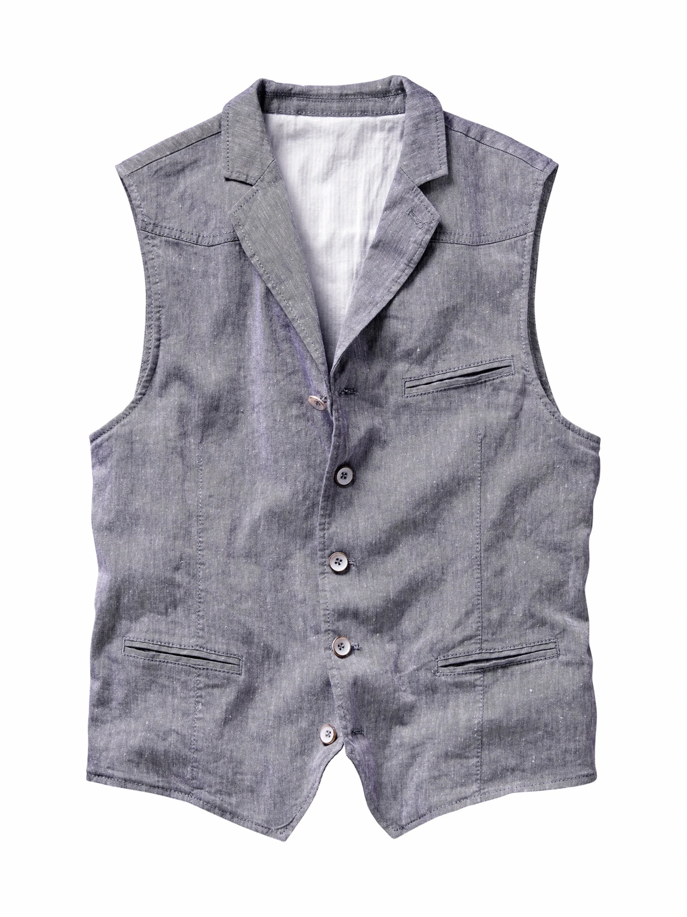 Verarbeitung: Weste mit stoffgleichem Rücken und verstellbarem Rückenriegel. Drei Paspeltaschen. Regular Fit.