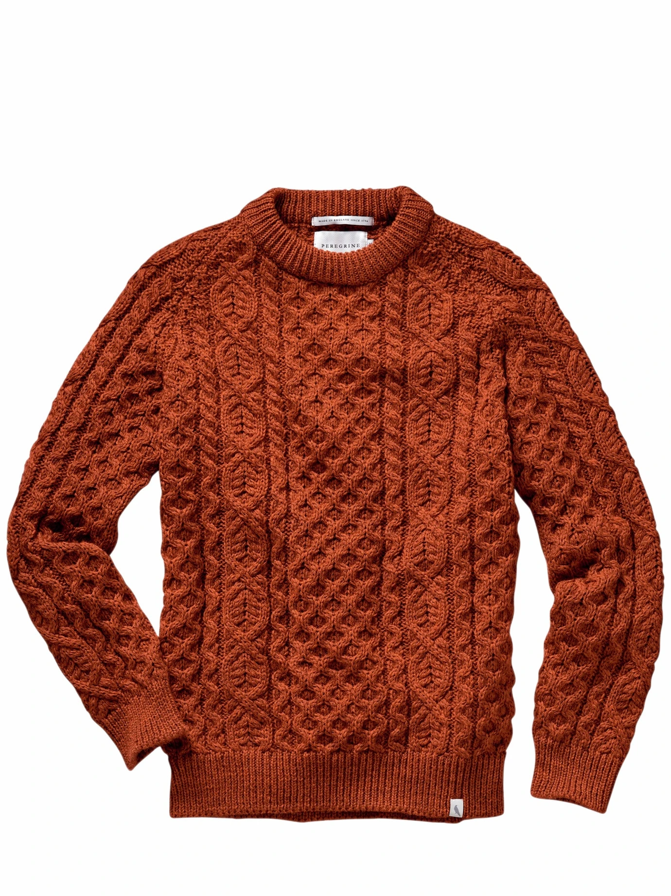 Im United Kingdom wird jeder Nadelstich gesetzt. Seit über 220 Jahren bereichert Peregrine in unsagbarer Qualität die britische Knitwear. Gestrickt aus purer Wolle in fettem 5 Gauge, das voluminöse Zopfmuster benötigt mehr als doppelt so viel Garn wie vergleichbare Pullover. Dadurch hält er auch bei einem Wetterumschwung warm, die Wolle ist außerdem traditionell und ganz natürlich wasserabweisend wie antibakteriell. Versponnen und gefärbt wird sie ebenfalls in Yorkshire. Ziemlich Heritage, ziemlich modern zu Jeans.
