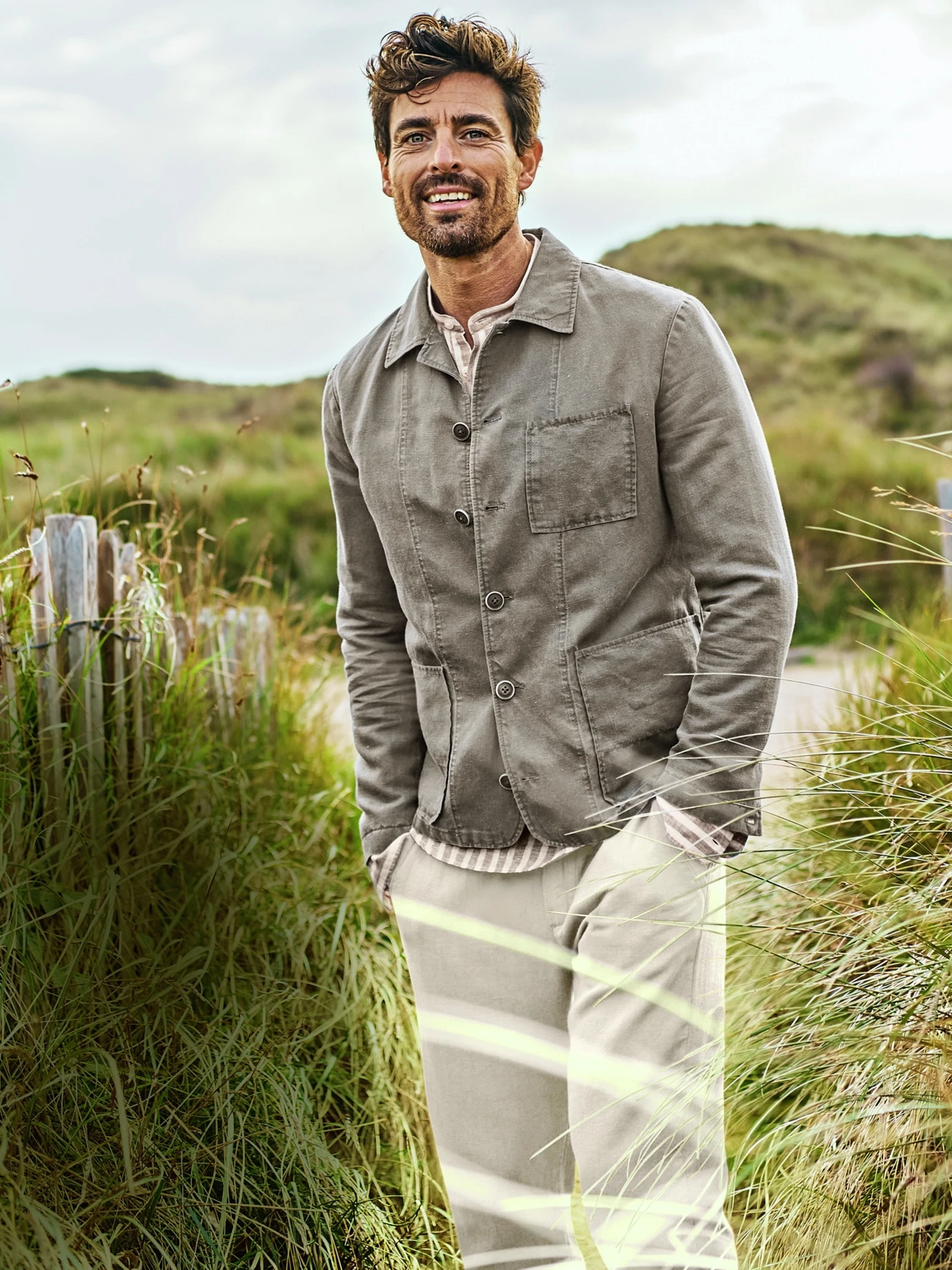 Drei Prozent entscheiden. Zwei Treppenstufen zugleich nehmen, kurzer Sprint zur herannahenden U-Bahn oder einfach mal das Tempo anziehen, diese Chino kommt Ihrer Zugkraft entgegen und lässt Sie, wenn Sie mögen, schneller ans Ziel gelangen. Drei Prozent Elasthan machen die Chino dehnbar und bequem, sie bleibt sich ihrer Form treu, Knitter können kaum entstehen. Der Rest ist Chinophilosophie, in der Kombination frei, passt zu sämtlichen Farben und starken Prints.